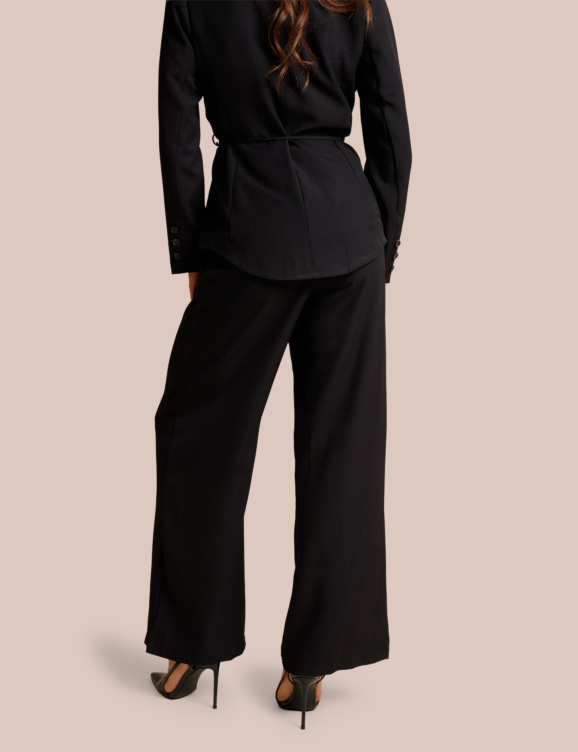 Discover polished elegance with the High Waist Tailored Wide Leg Trouser in Black. Designed to elongate your silhouette, these trousers feature a flattering high waist and flowing wide legs that create a sophisticated, effortless look. Crafted for comfort and style, they are perfect for professional settings or refined casual wear, offering versatile pairing options to elevate any outfit.