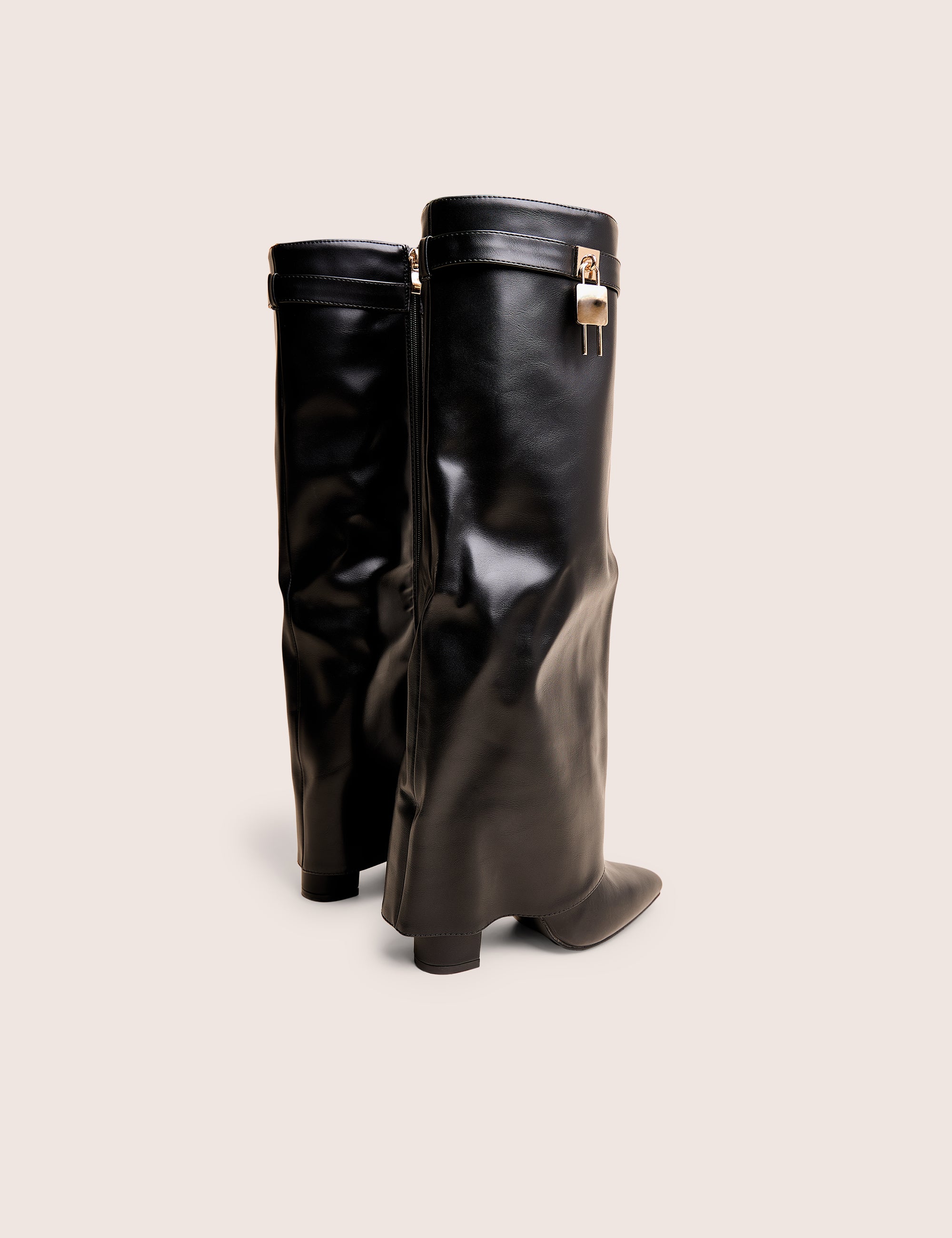 Make a striking impression with the Reese Black Fold Over PU Knee High Boots. These boots feature a sleek PU finish and a stylish fold-over design that adds depth and sophistication. The knee-high silhouette offers a bold, elongating effect, perfect for elevating any outfit from casual to chic. With a durable sole for all-day comfort, these boots combine fashion and function effortlessly.