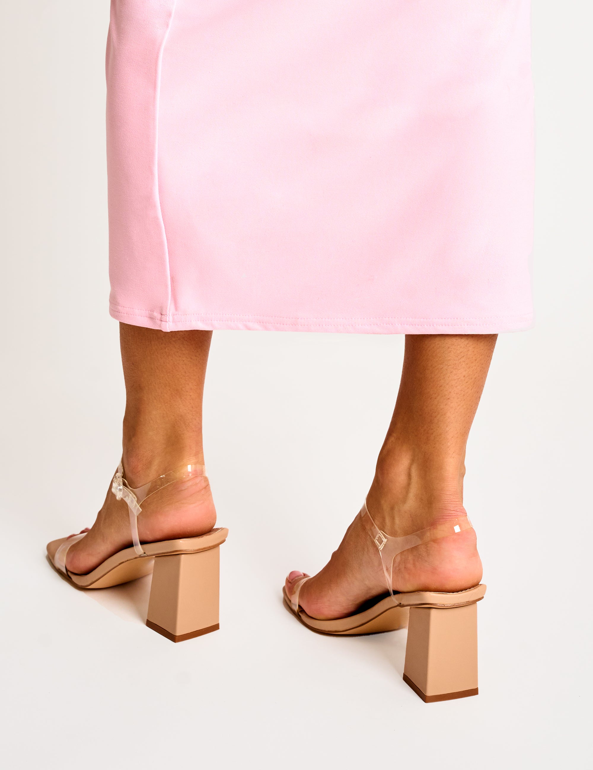 - Maryse Nude Perspex Pu Barely There Mid Block Heels