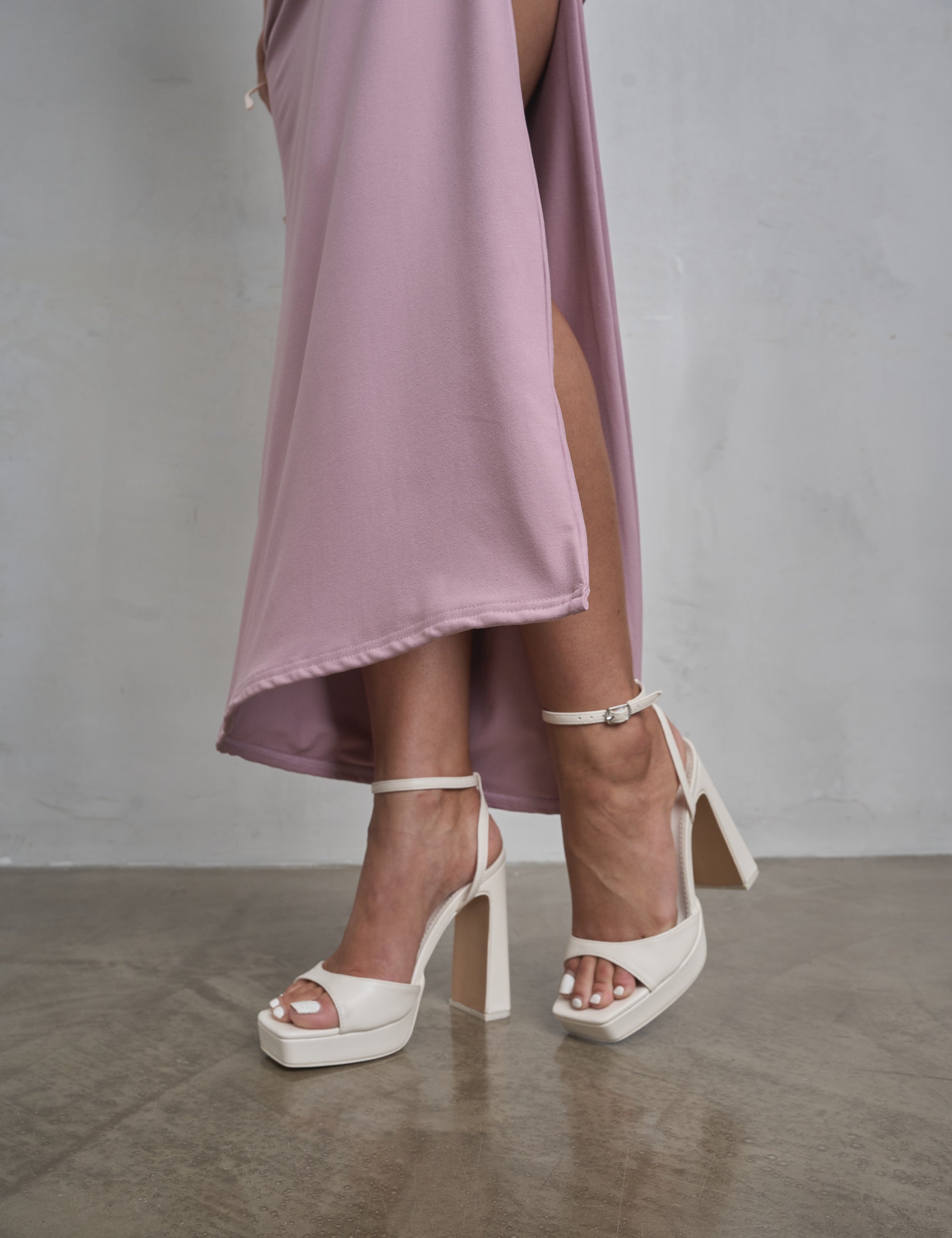 - Resist Cream Pu Peep Toe Barley There Platform Heels