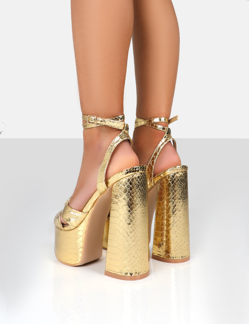 Ladies, it's time to meet your new statement party heels...Leo Edition! These gold beauties are guaranteed to turn some heads and we are OBSESSED. Not to mention the added height these gorgeous platform heels will provide. Metallic heels are an absolute and will level up your out out looks. We're styling these high heels with a satin slip dress and sheer leopard print socks for an edgy look. Catwalk vibes or what?