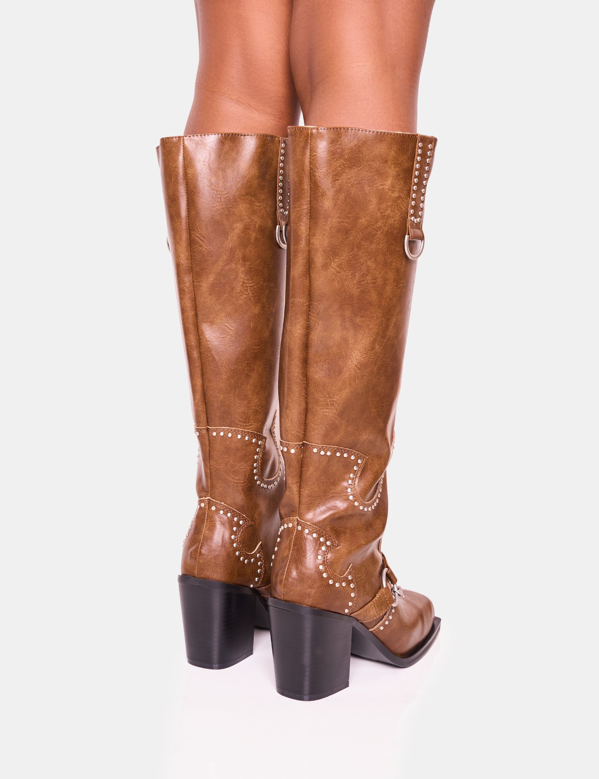 Live your Hannah Montana fantasy in our Nashville Vintage Browm Western Studded Block Heel Knee High Boot. With its unique style and comfortable fit, strut like a cowgirl with just the right amount of edge. Don't just walk, yee-haw your way through life!