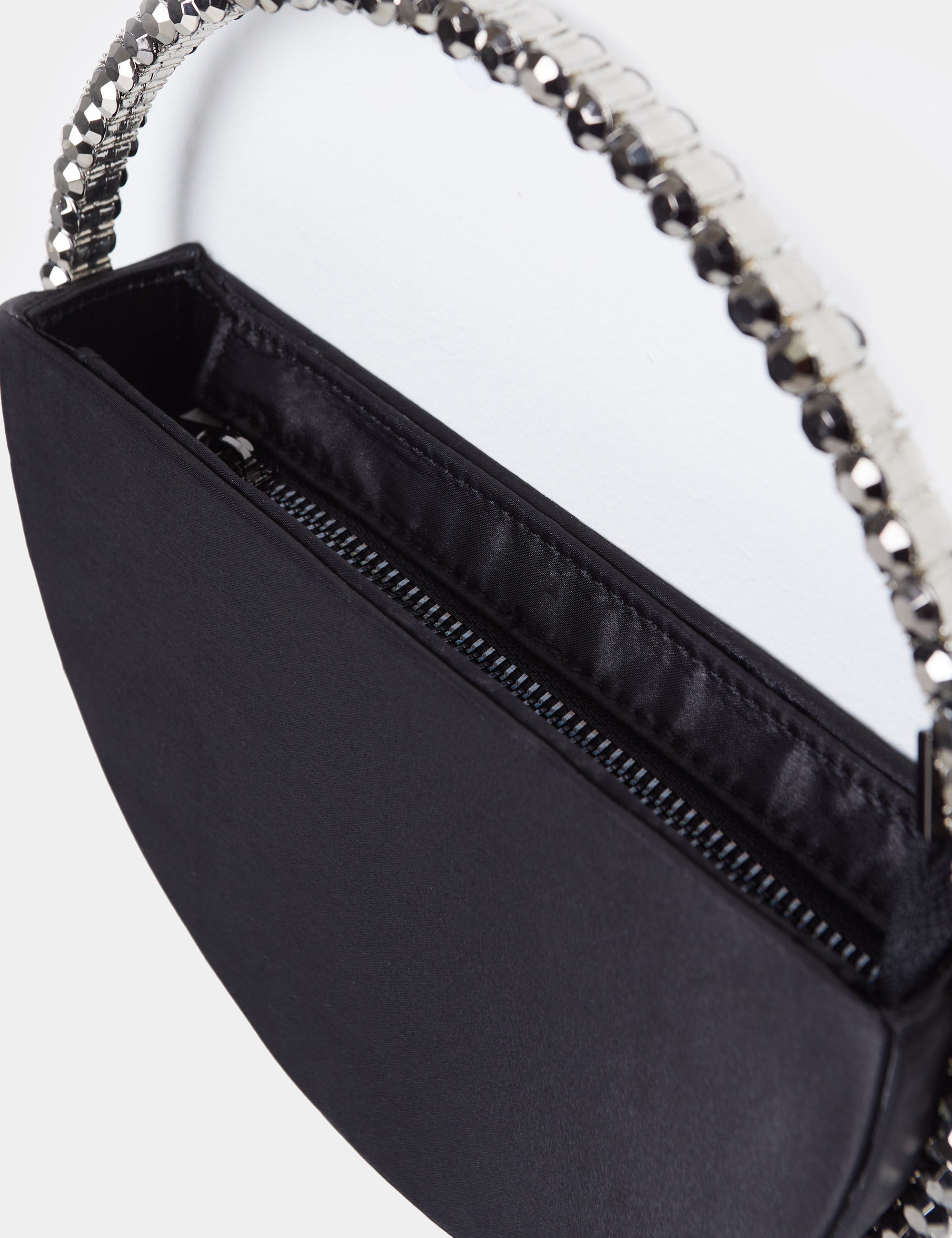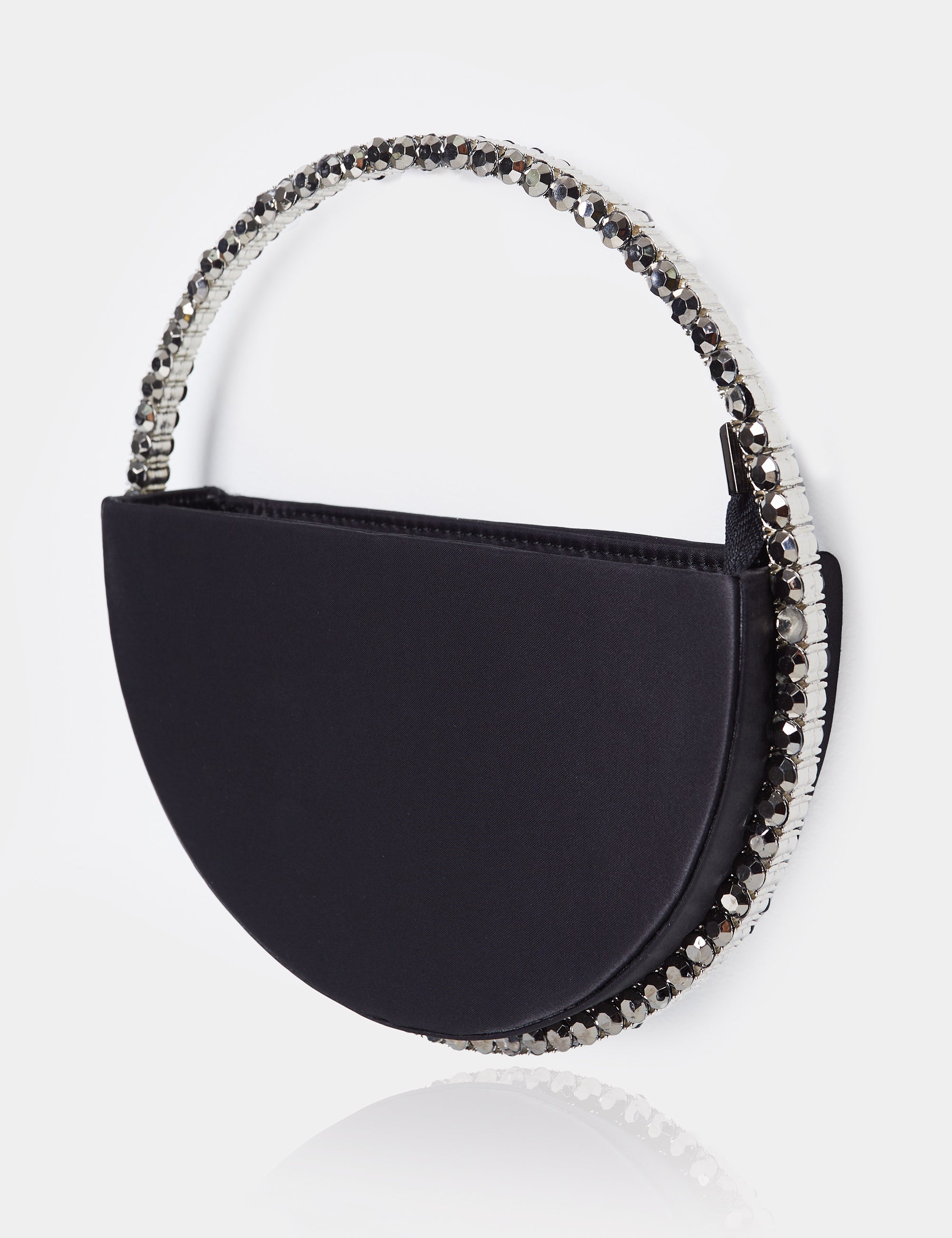 - The Alessia Black Satin Circle Diamante Mini Handbag