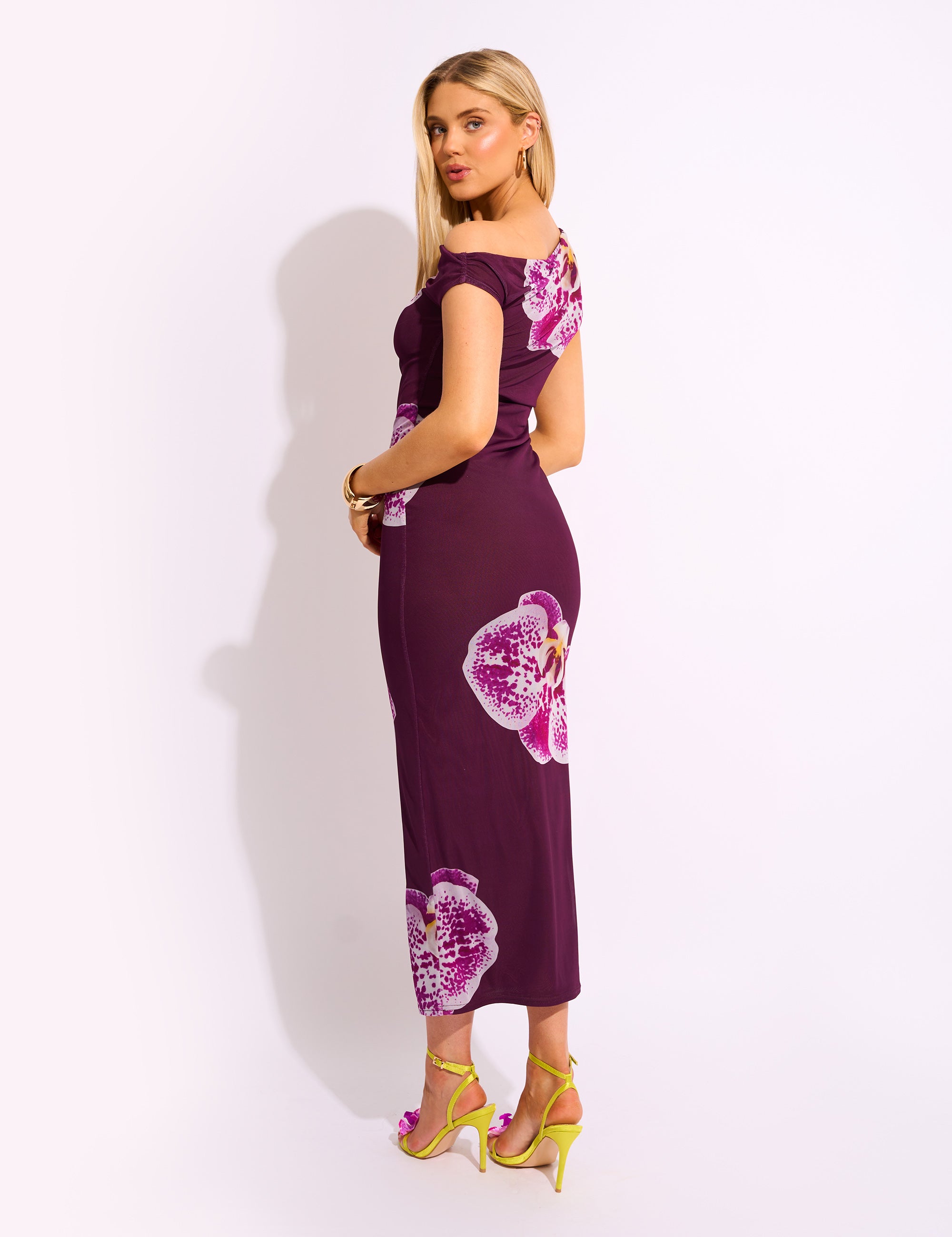 - Asymmetric One Shoulder Floral Maxi Dress Burgundy