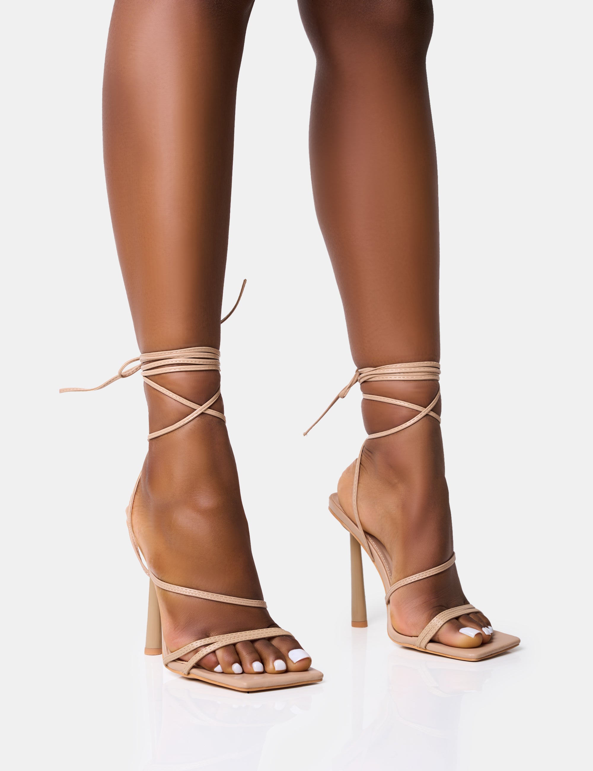 Bad Gal Nude Strappy Lace Up Square Toe Heels