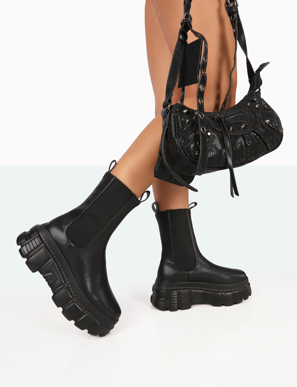 - Banner Black PU Chunky Sole Ankle Boots
