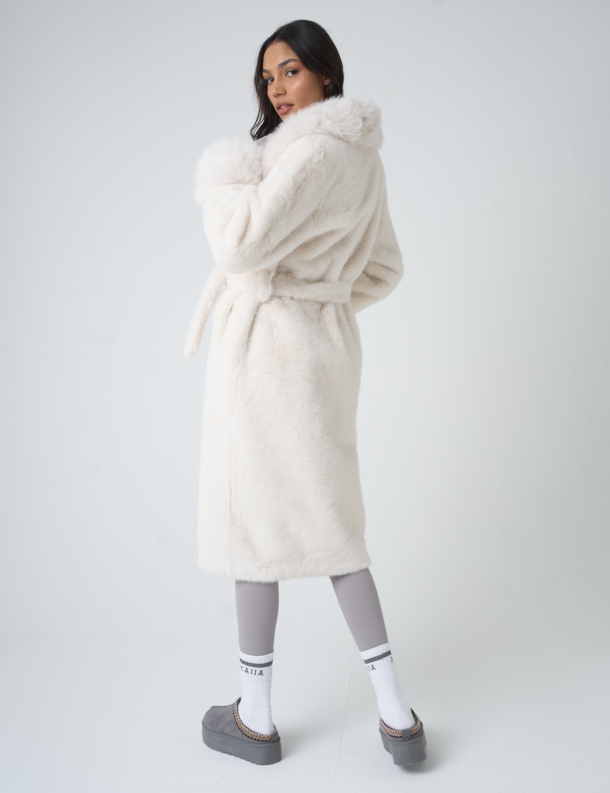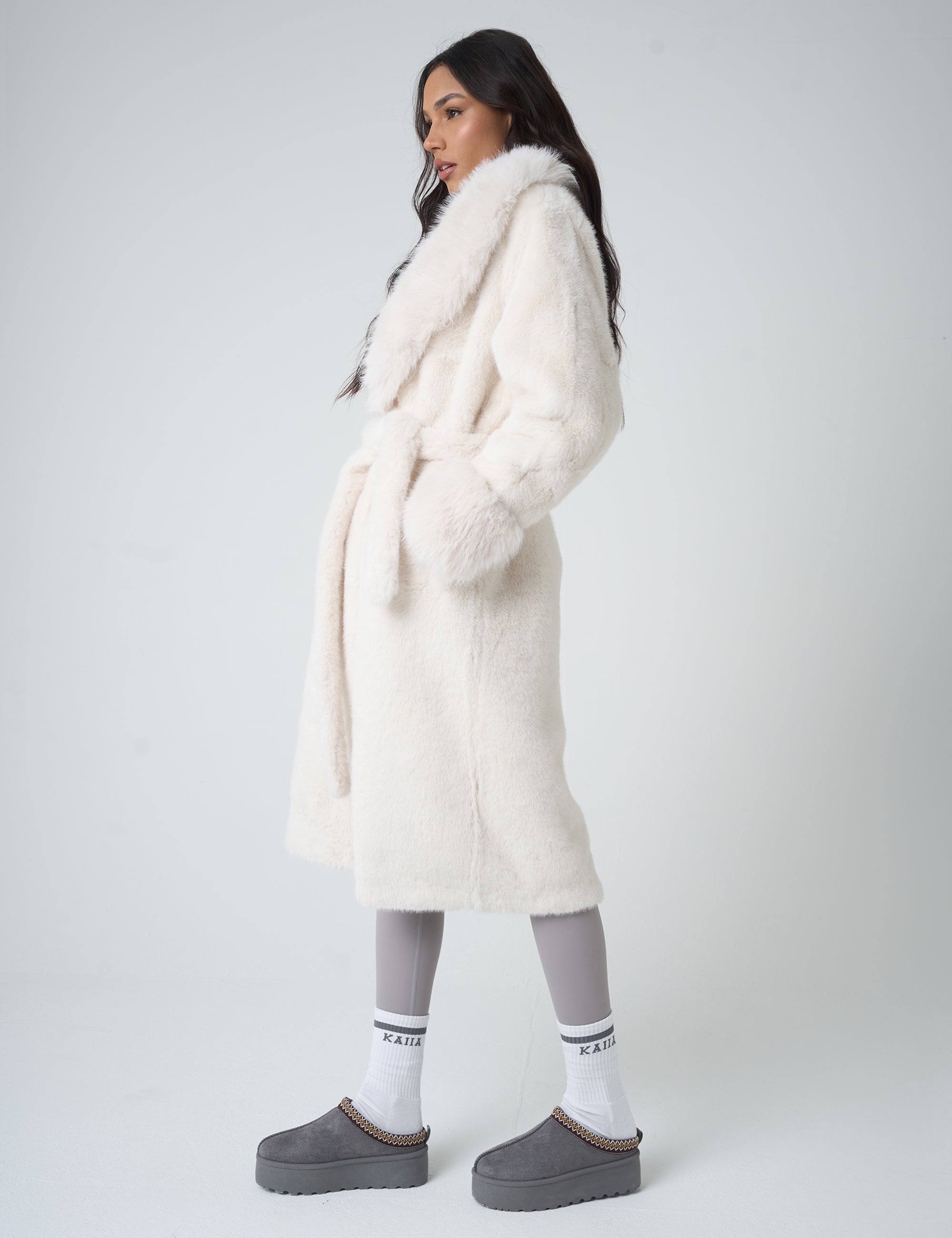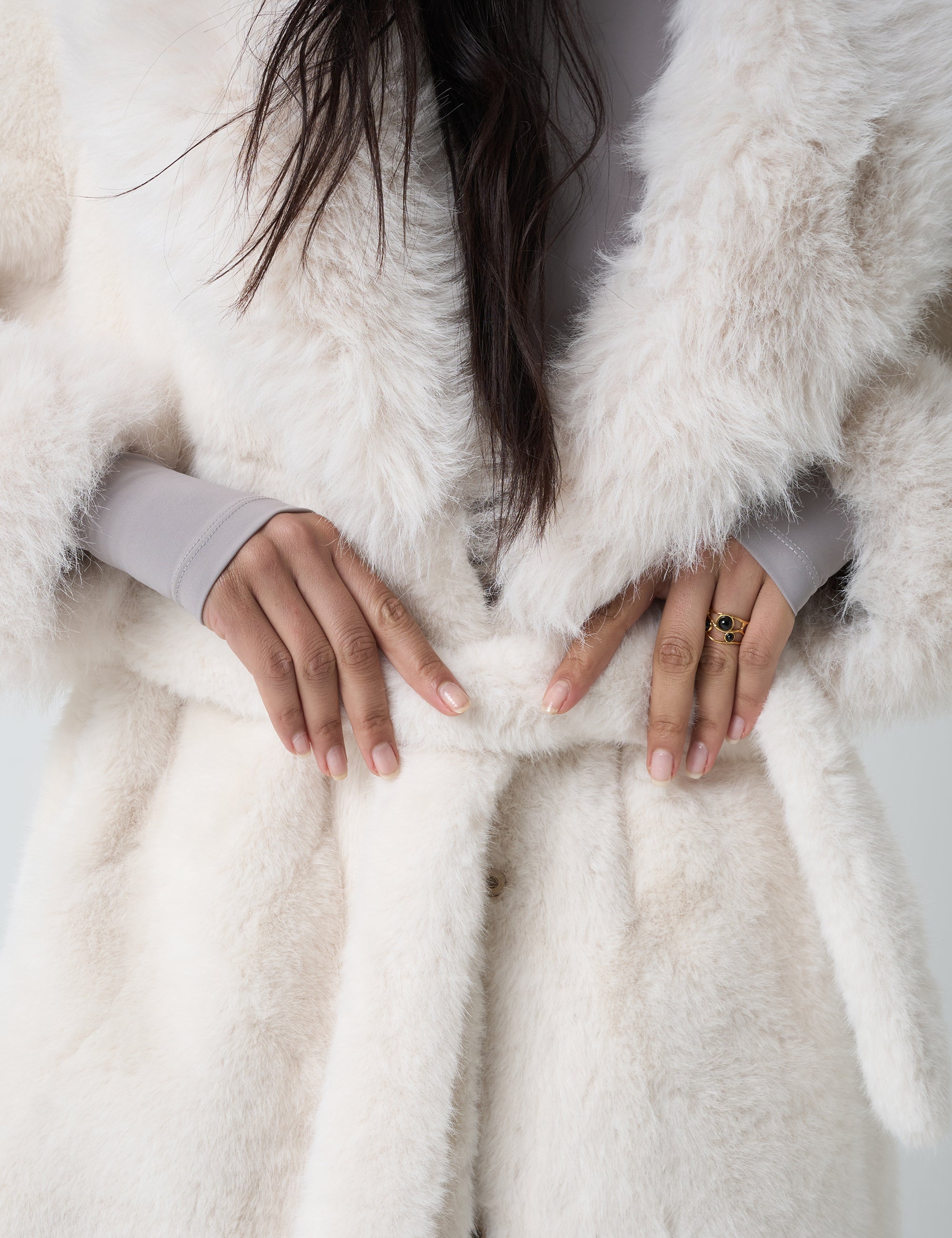 Embrace the luxurious warmth and style of our Belted Faux Fur Long Coat in White. The soft faux fur and elegant belted design will keep you cozy and chic all winter long. Elevate your outerwear game with this must-have statement piece!