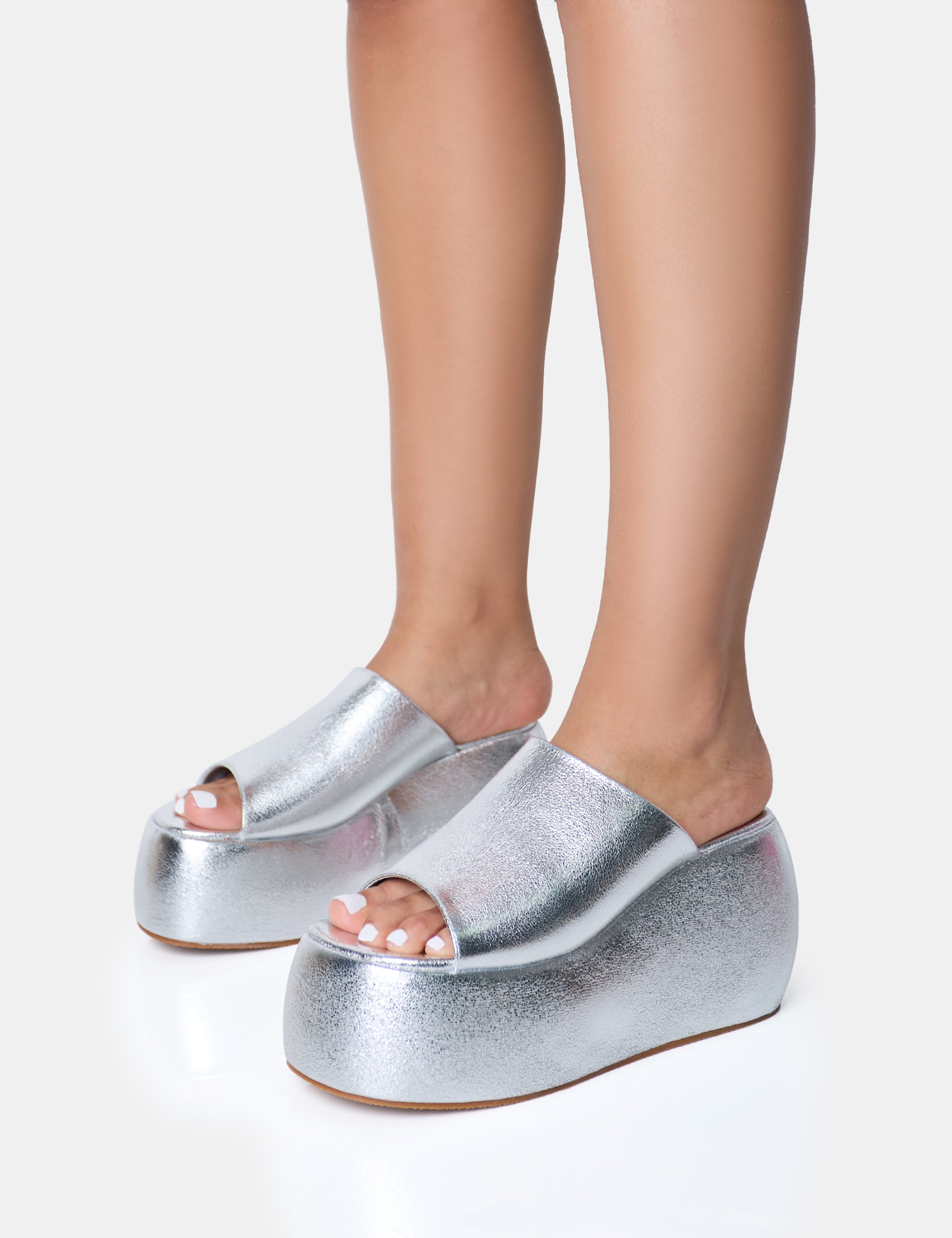 - Blue Moon Silver Metallic Chunky Platform Wedge Sandals