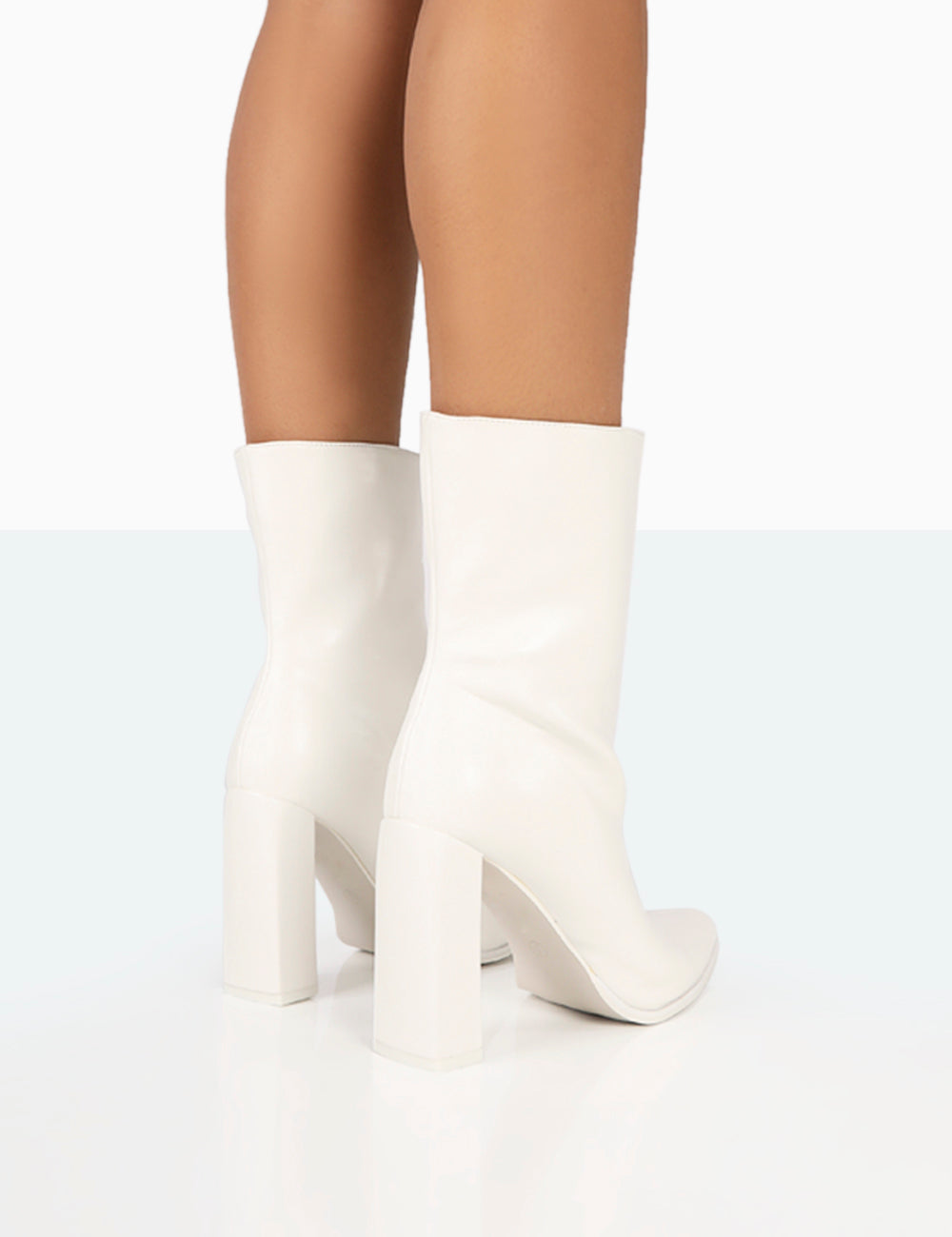 - Bridget White PU Pointed Toe Block Heeled Ankle Boots