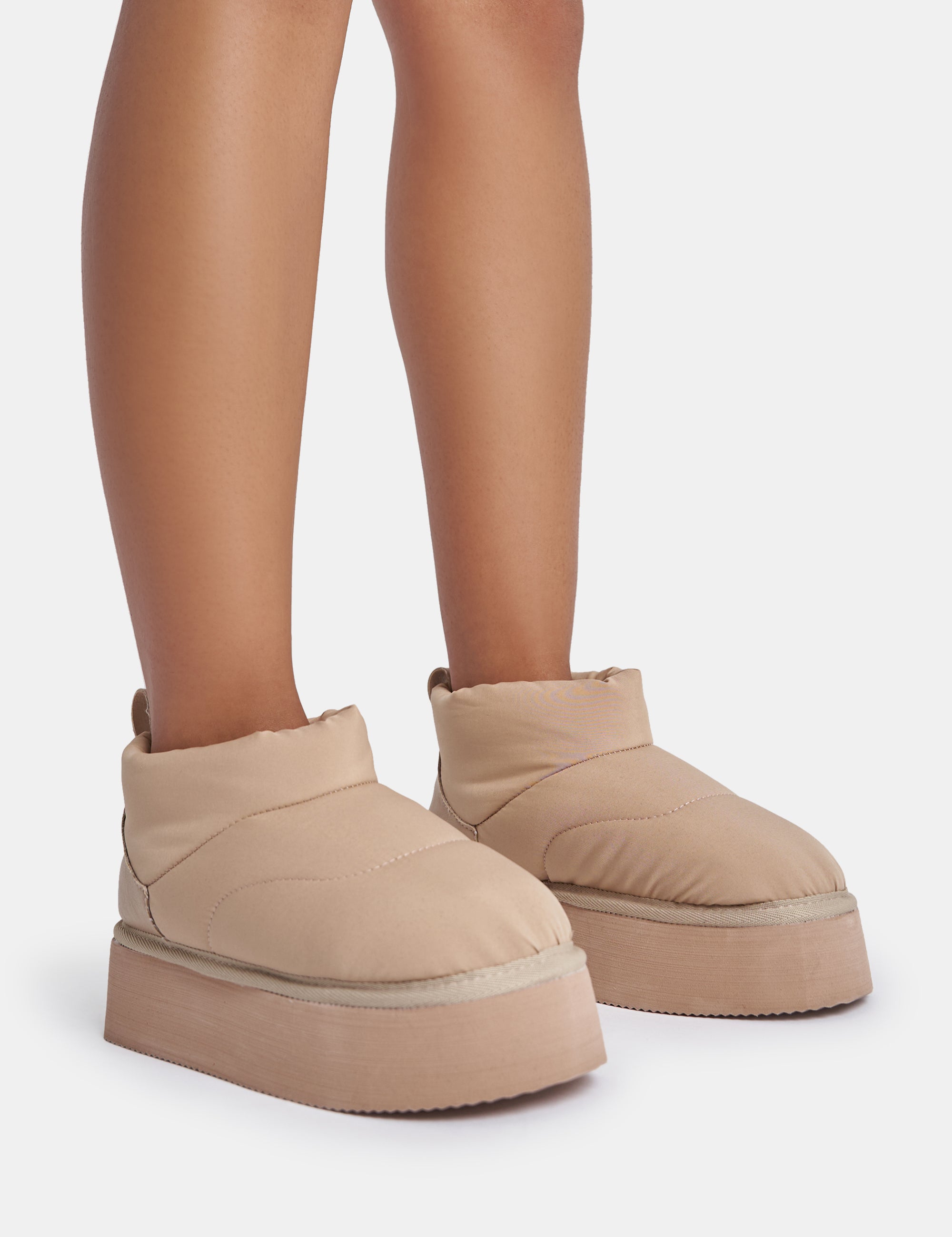 - Chill Out Beige Nylon Puffer Ultra Mini Ankle Platform Boots