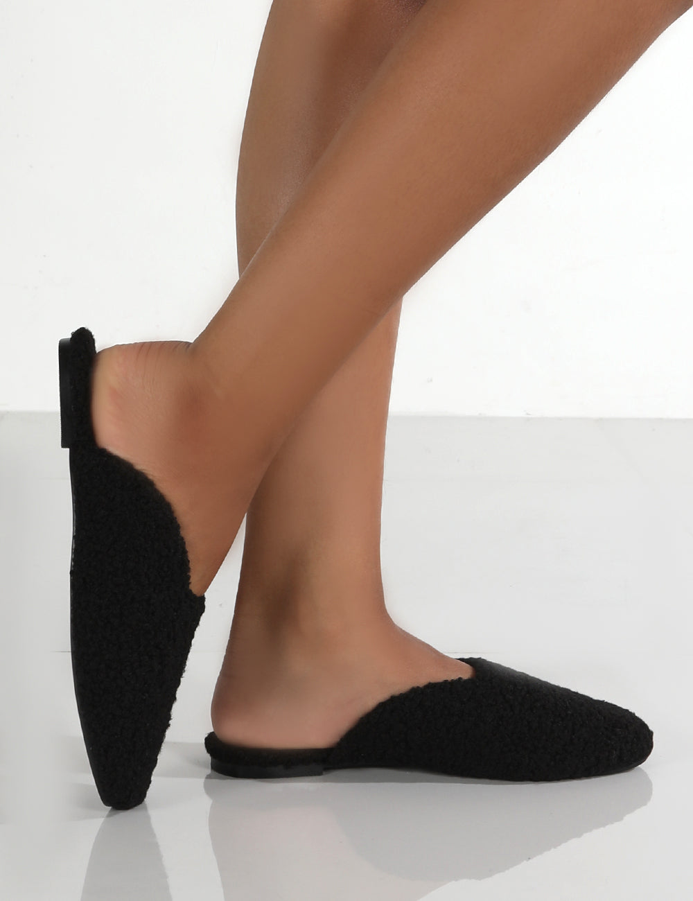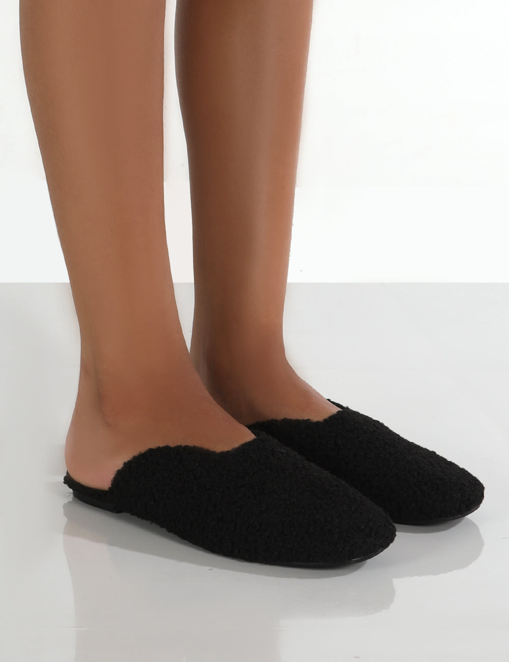 Ciao features a closed toe slip on design and a fluffy teddy material. Your new go to slipper for those lazy days and cozy nights in.