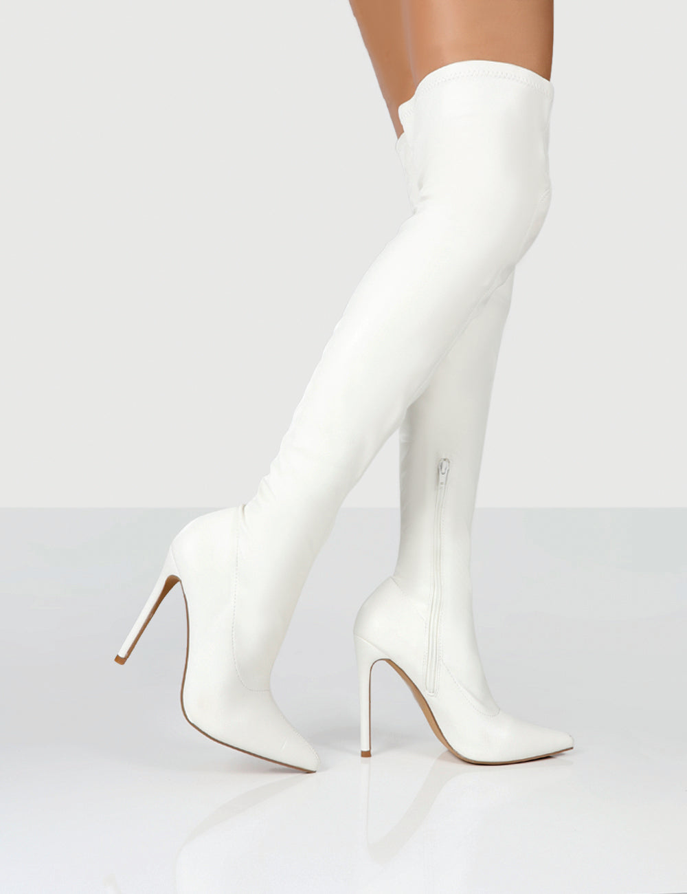 - Confidence White Stiletto Heeled Over The Knee PU Boots