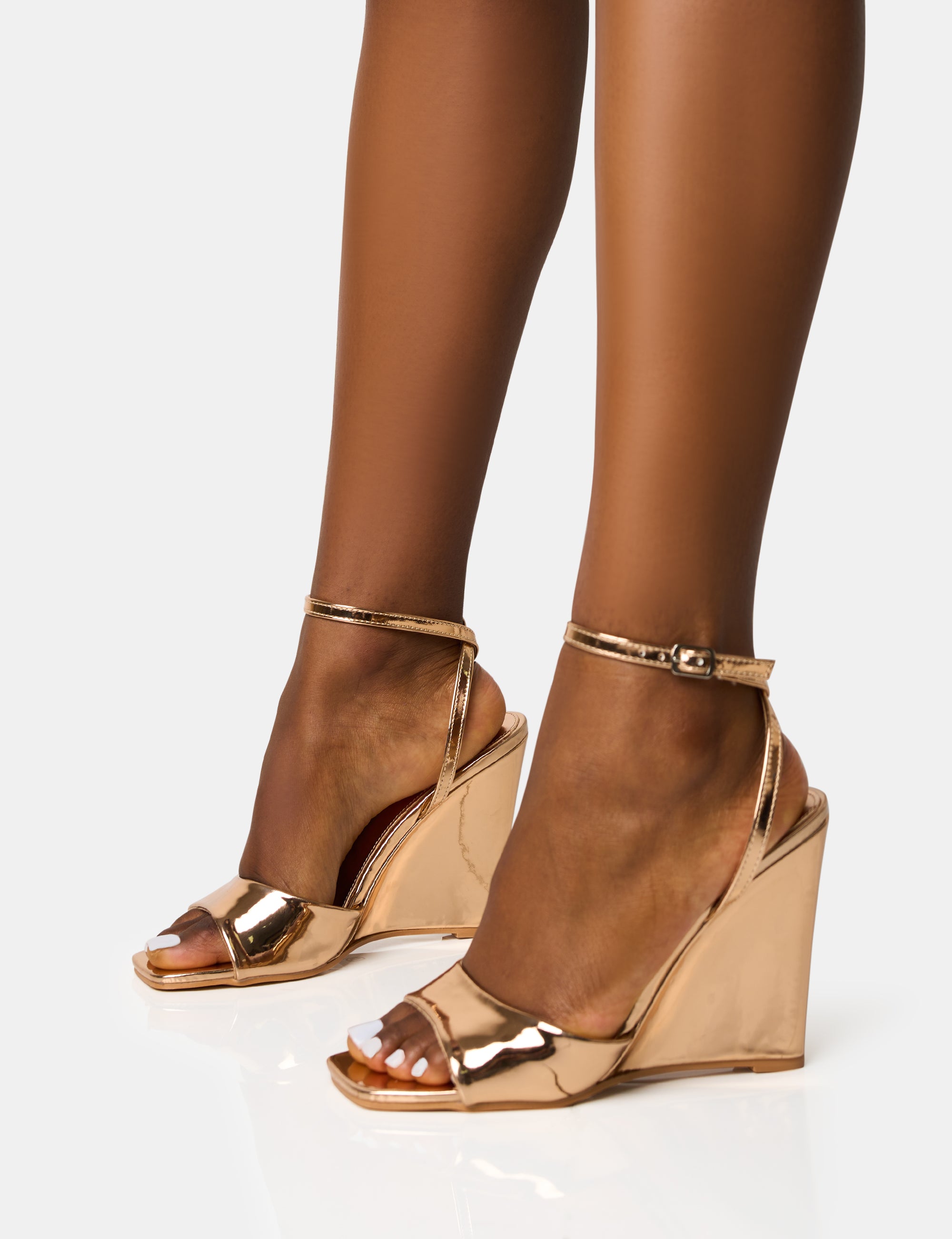 - Connection Rose Gold Strappy Peep Toe Wedges