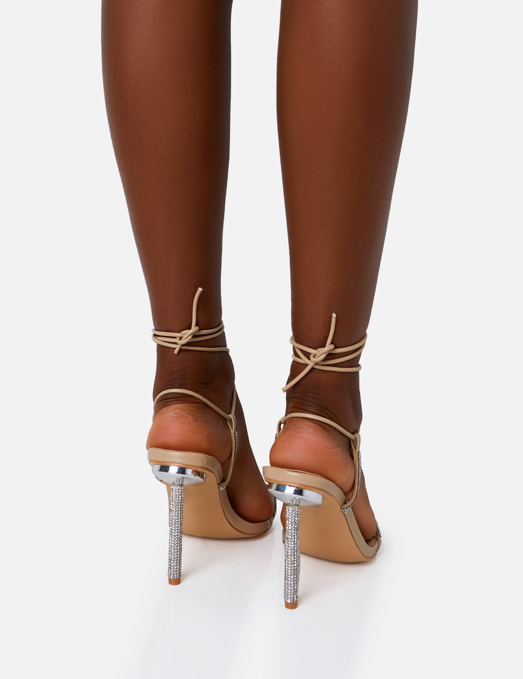 Dream Nude Pu Strappy Diamante Heel Detail Pointed Toe Stilettos
