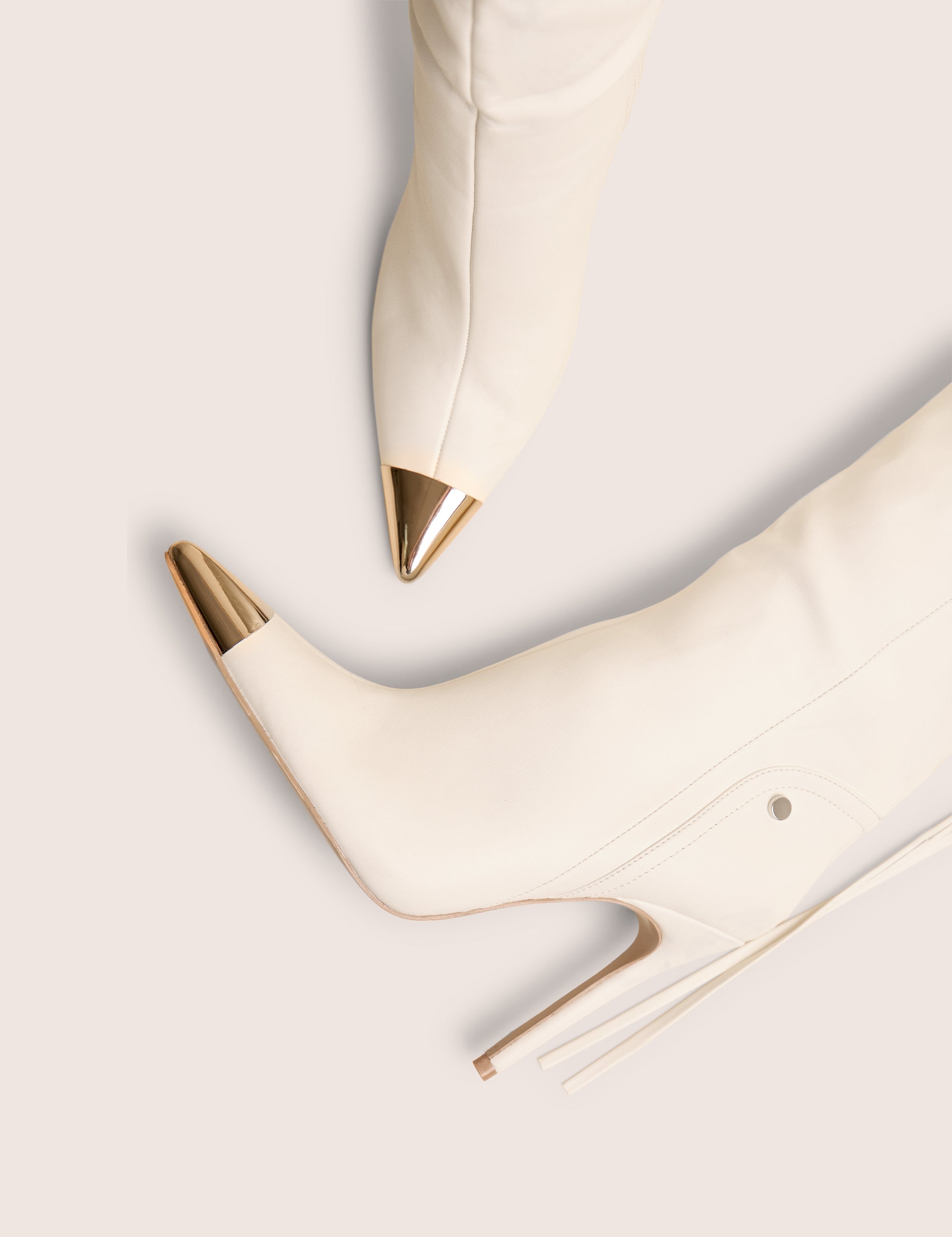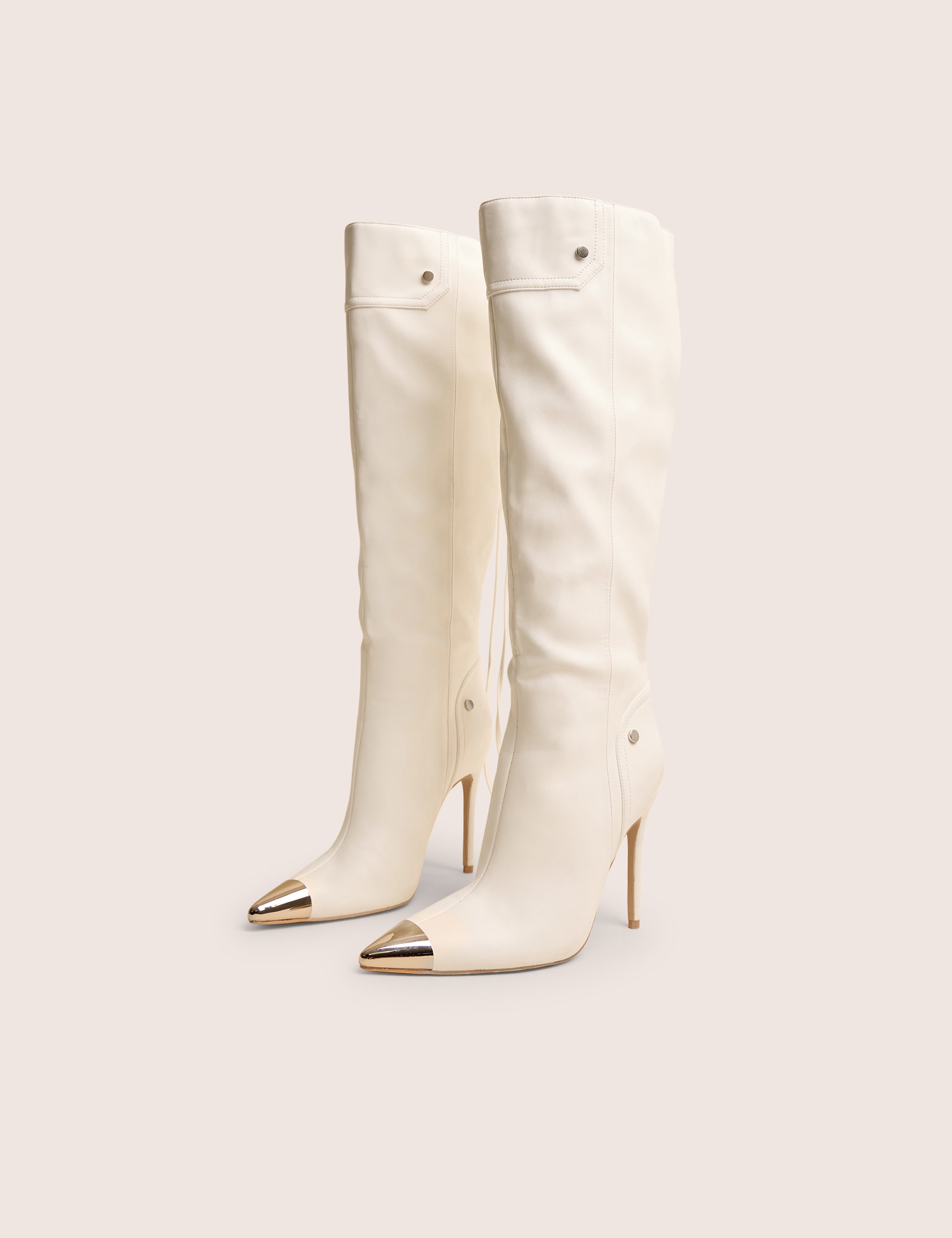 - Finest White Toe Cap Detail Pointed Knee High Boots