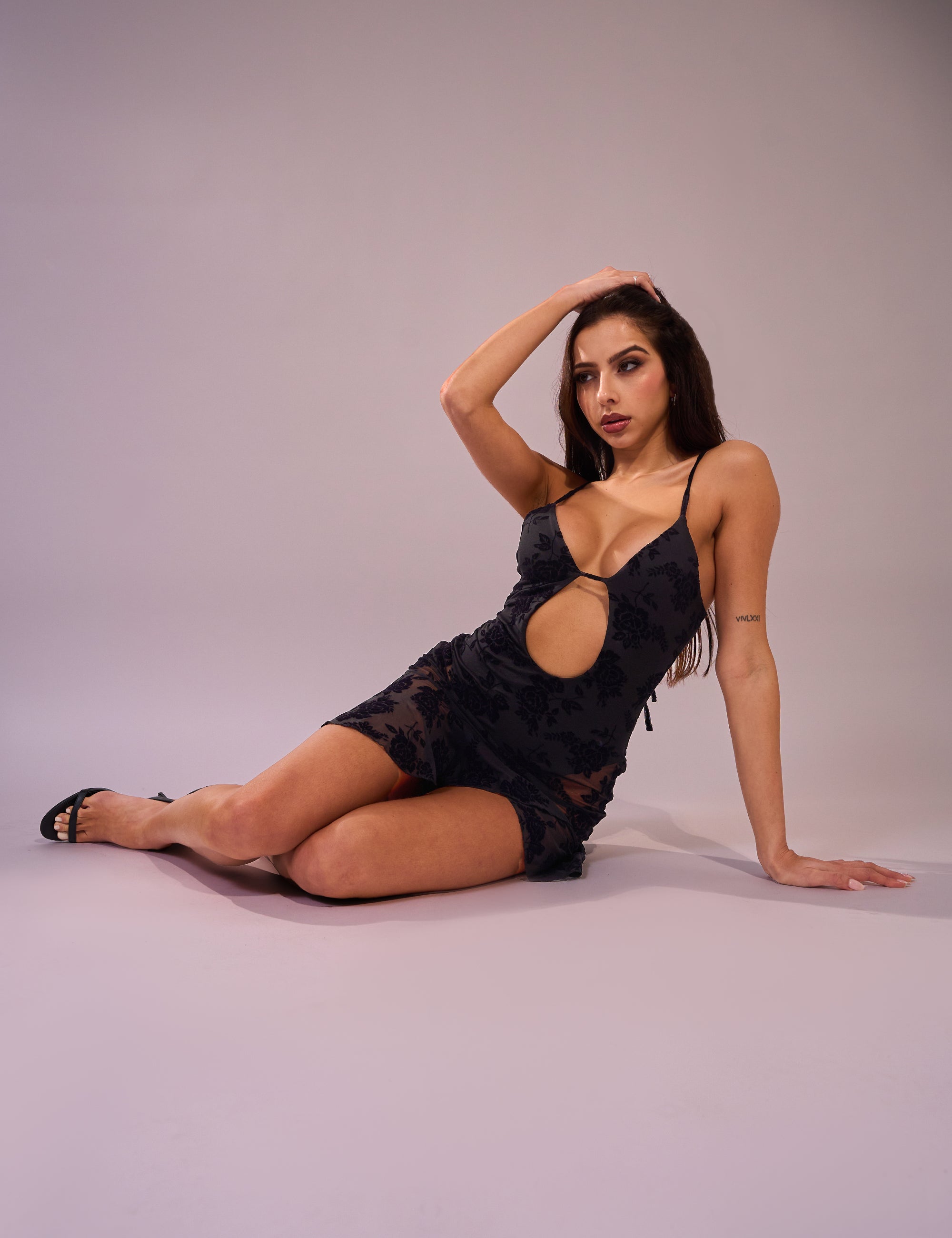 Unleash your inner flower child with this flirty and feminine Floral Dipped Front Frill Detail Mini Dress in classic black. The delicate floral pattern and playful frill detailing add a touch of whimsy to this must-have dress. Perfect for any occasion, this dress will make you stand out in a crowd.