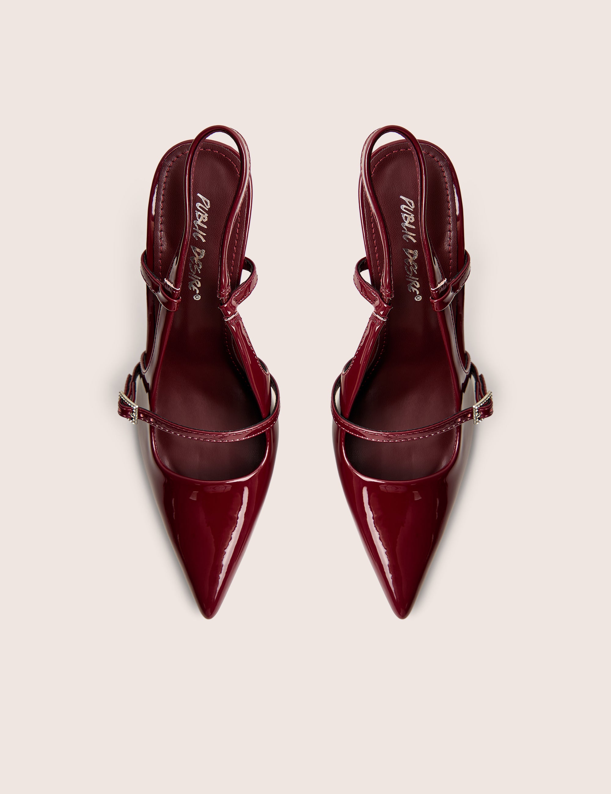 - Forget Me Not Burgundy Embellished Buckle Detail Sling Back Court Heels