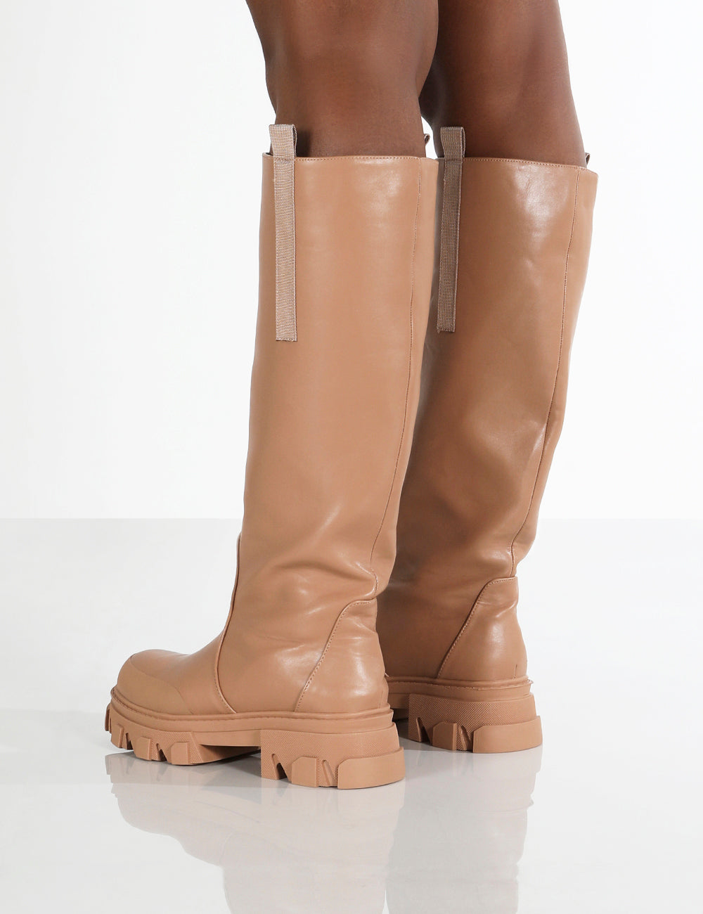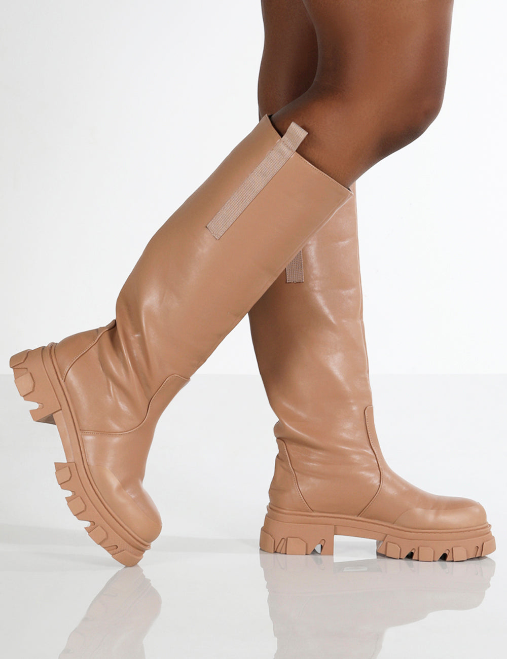 - Genius Tan Knee High Chunky Sole Boots