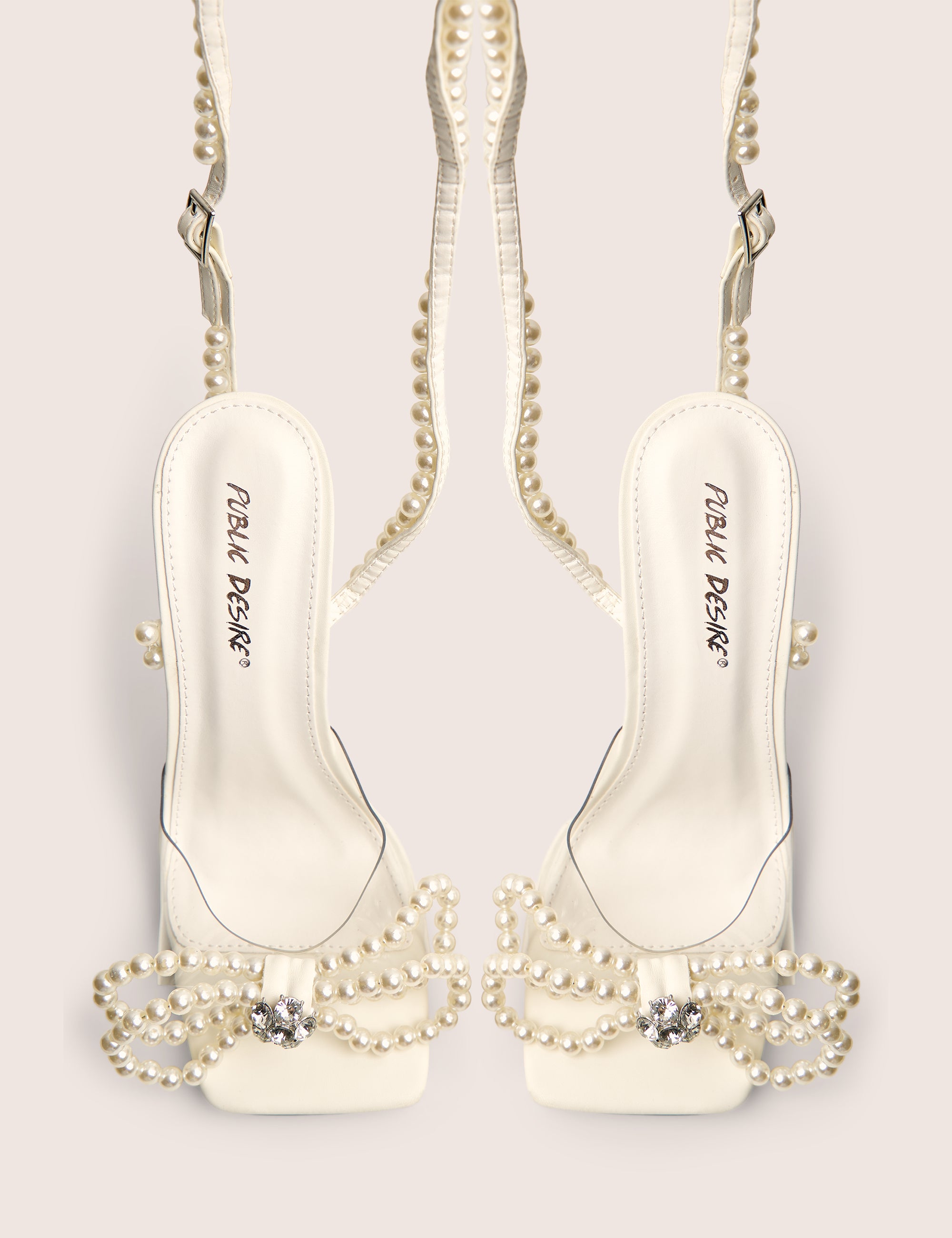 Glimmer features a diamante detail lace up ankle strap with Pearl front bow detail. Glimmer will glam up any outfit and will compliment any of your Occasions, Weddings, Wedding Guest, and Prom to lift that party dress! With these shoes you are bound to be the sparkle in the room – Serving ultimate glam vibes, we love!