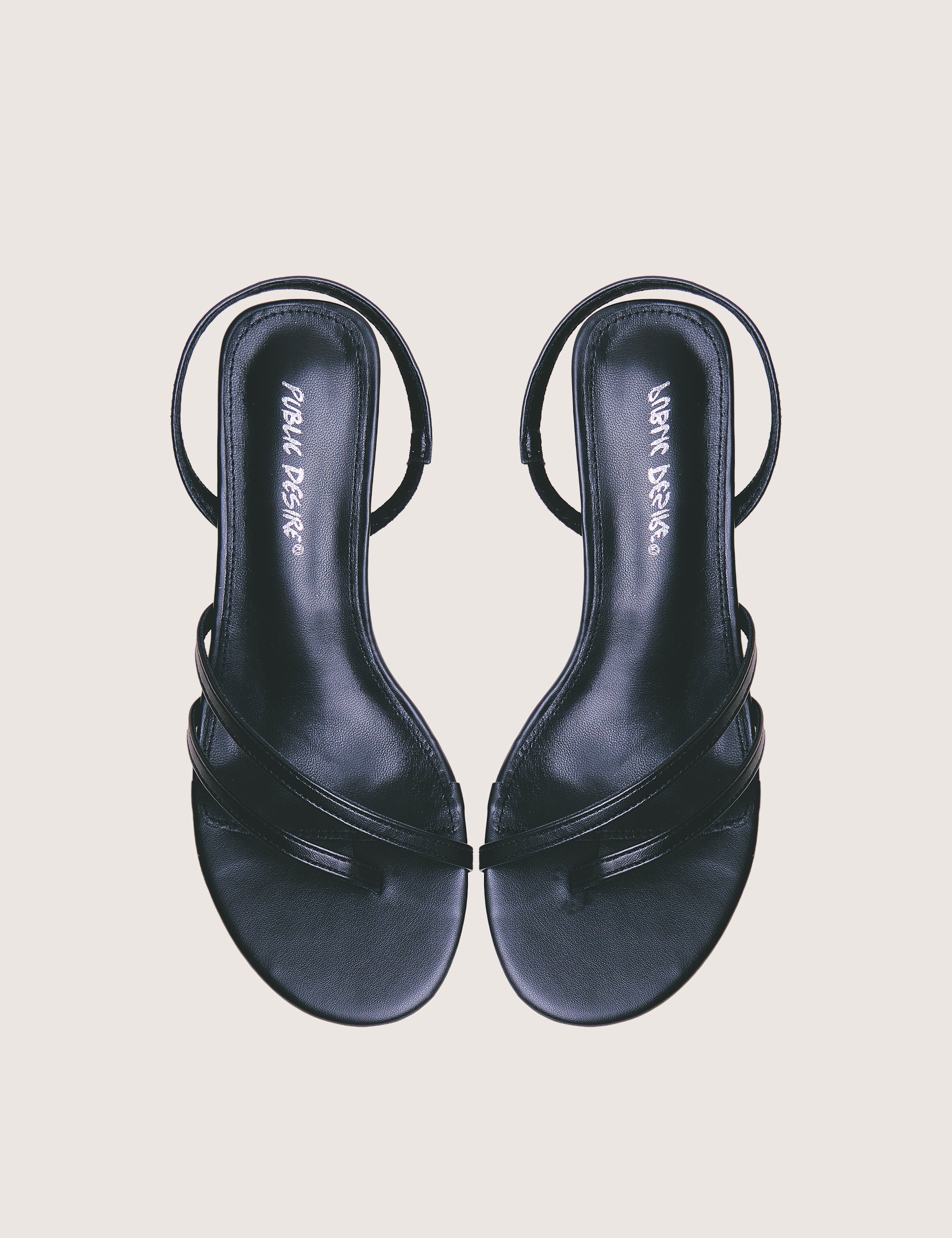- Helios Black Pu Asymmetric Toe Strap Sling Back Mid Heels