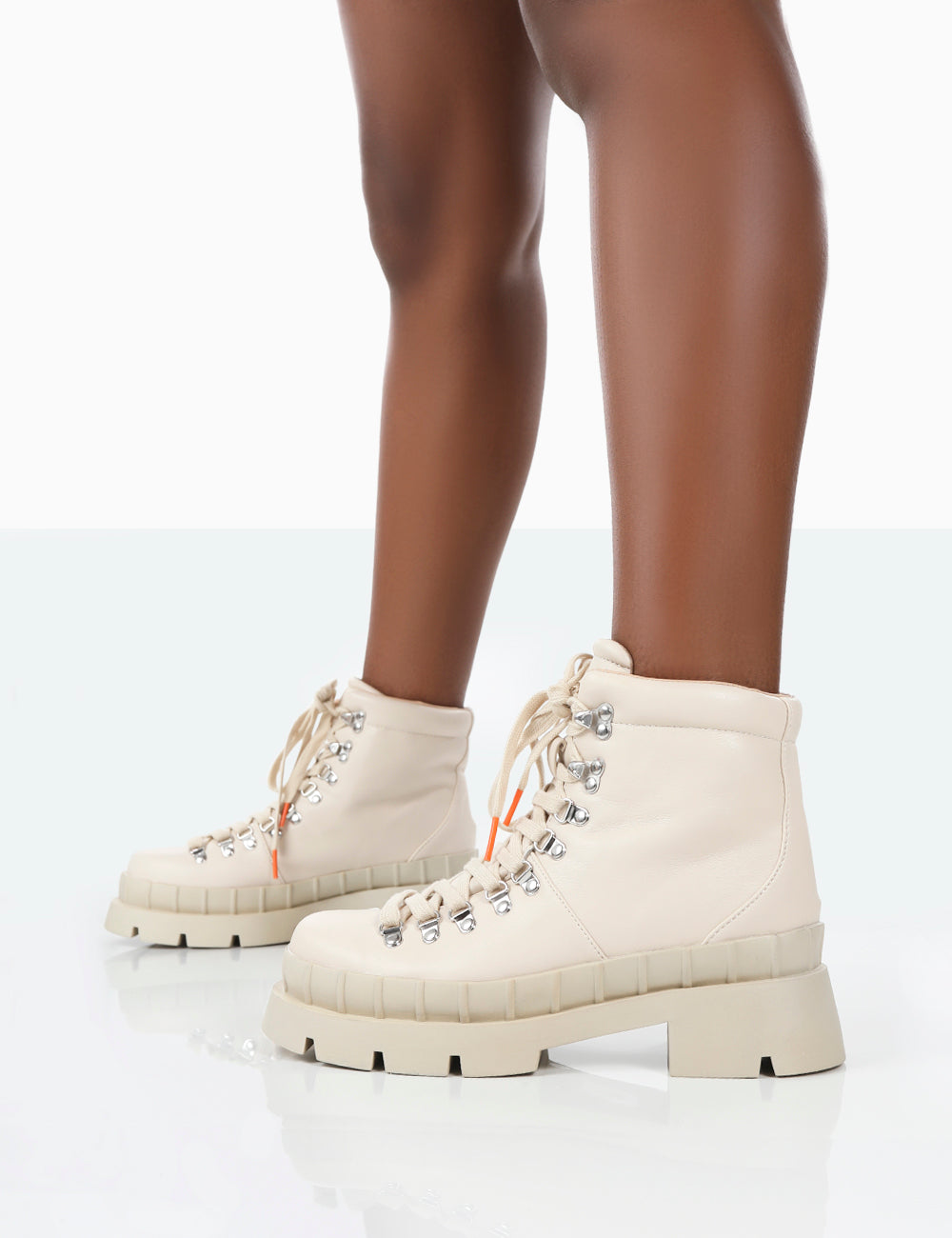 Hike There Bone Pu Lace Up Chunky Sole Winter Boots