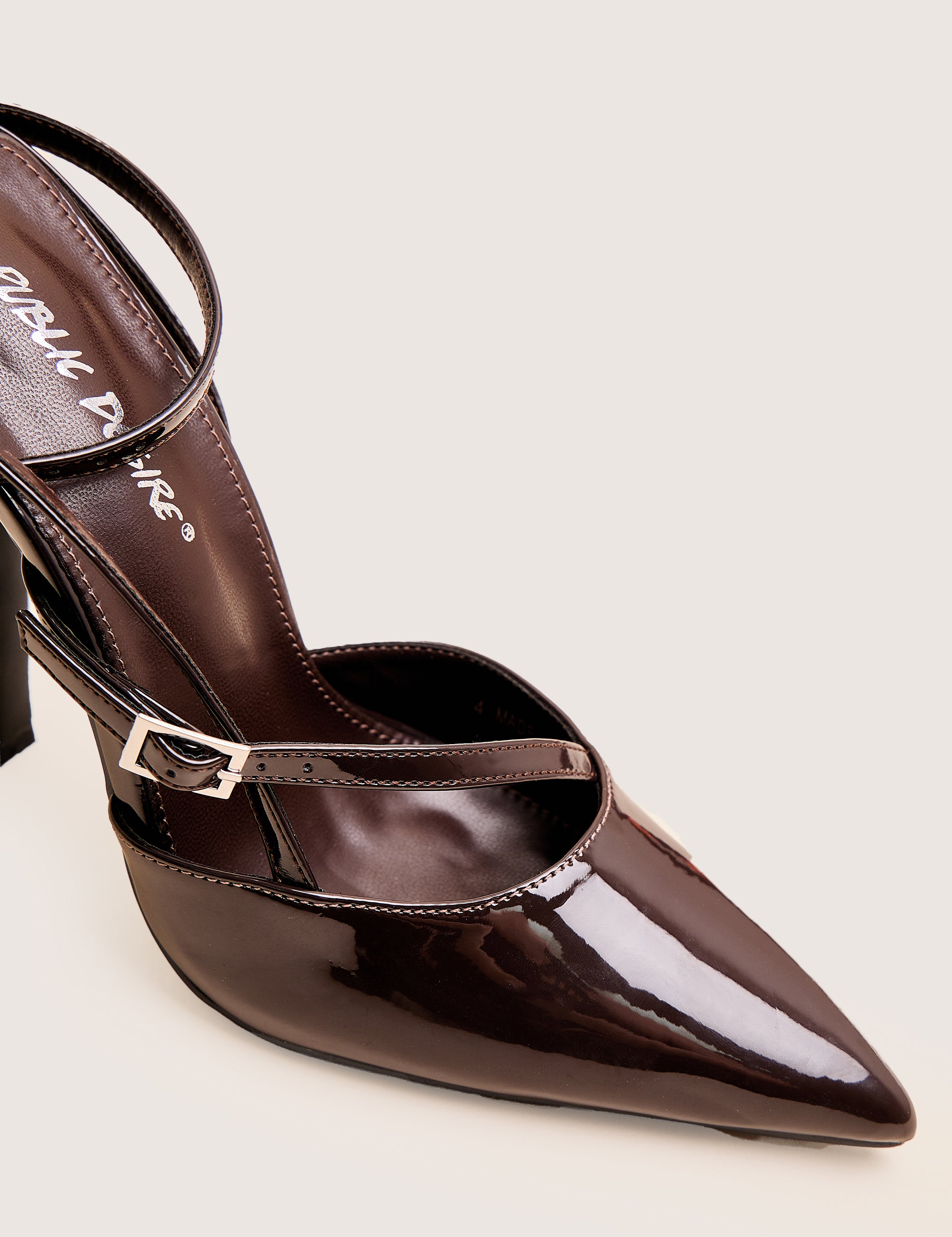 - Idol Dark Chocolate Patent Buckle Strappy Detail Stiletto Court High Heels