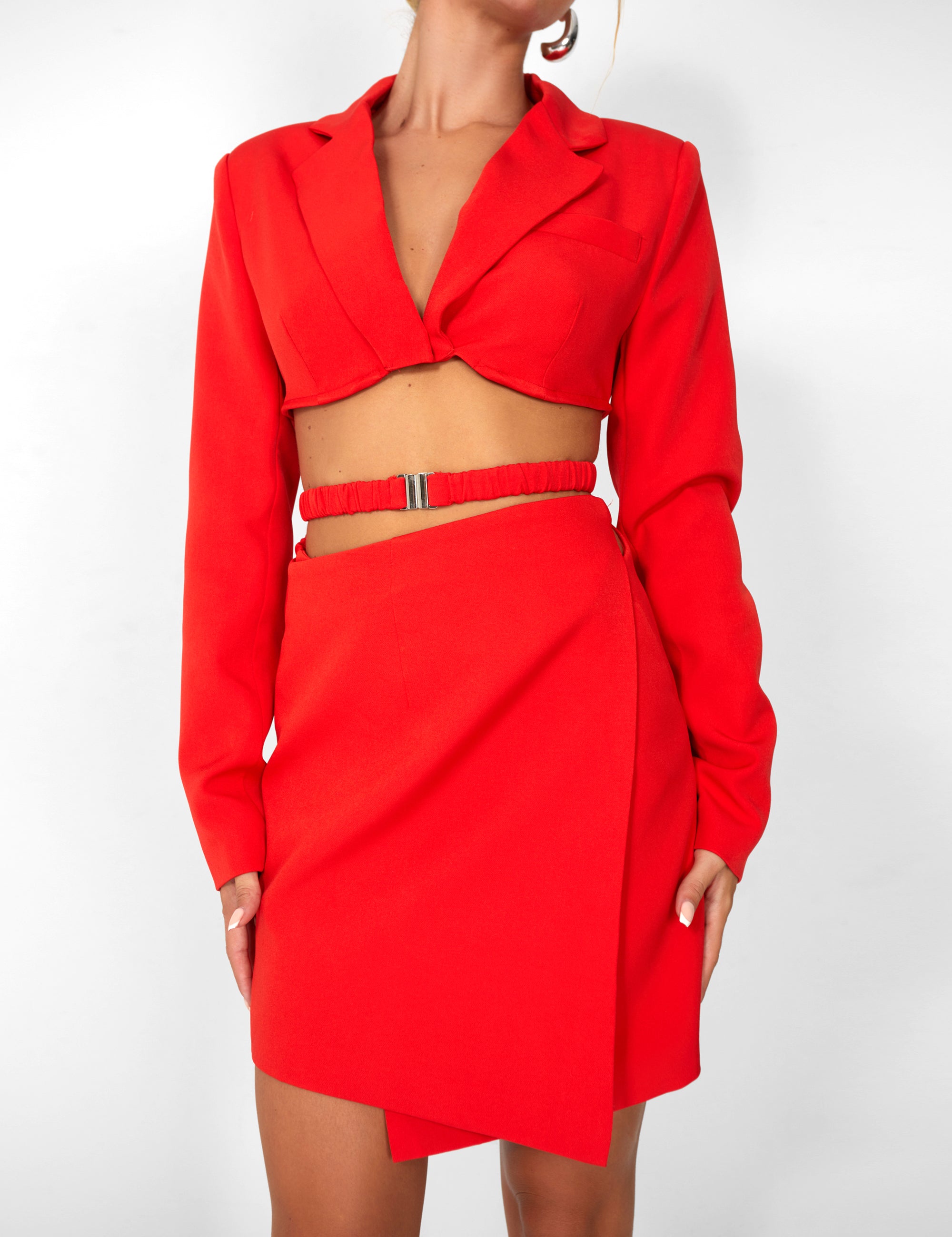 - Kaiia Wrap Waist Mini Blazer Dress in Red