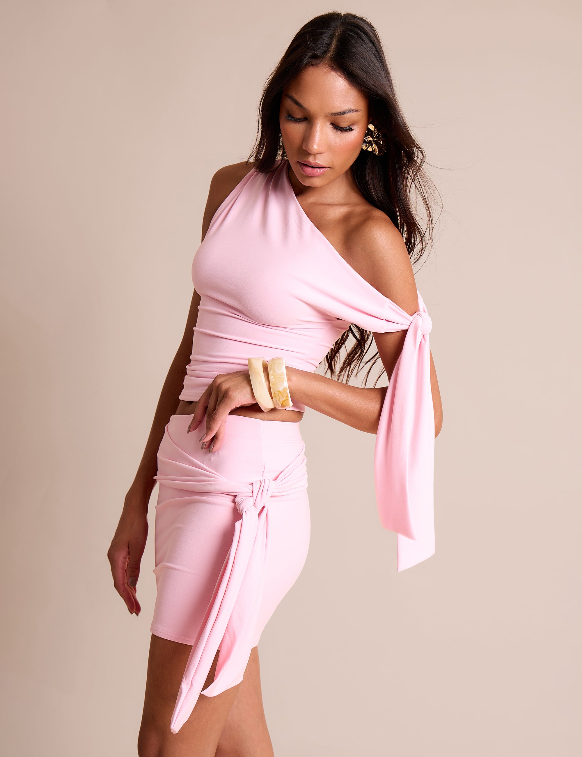 - Knot Detail Luxe Slinky Mini Skirt Soft Pink