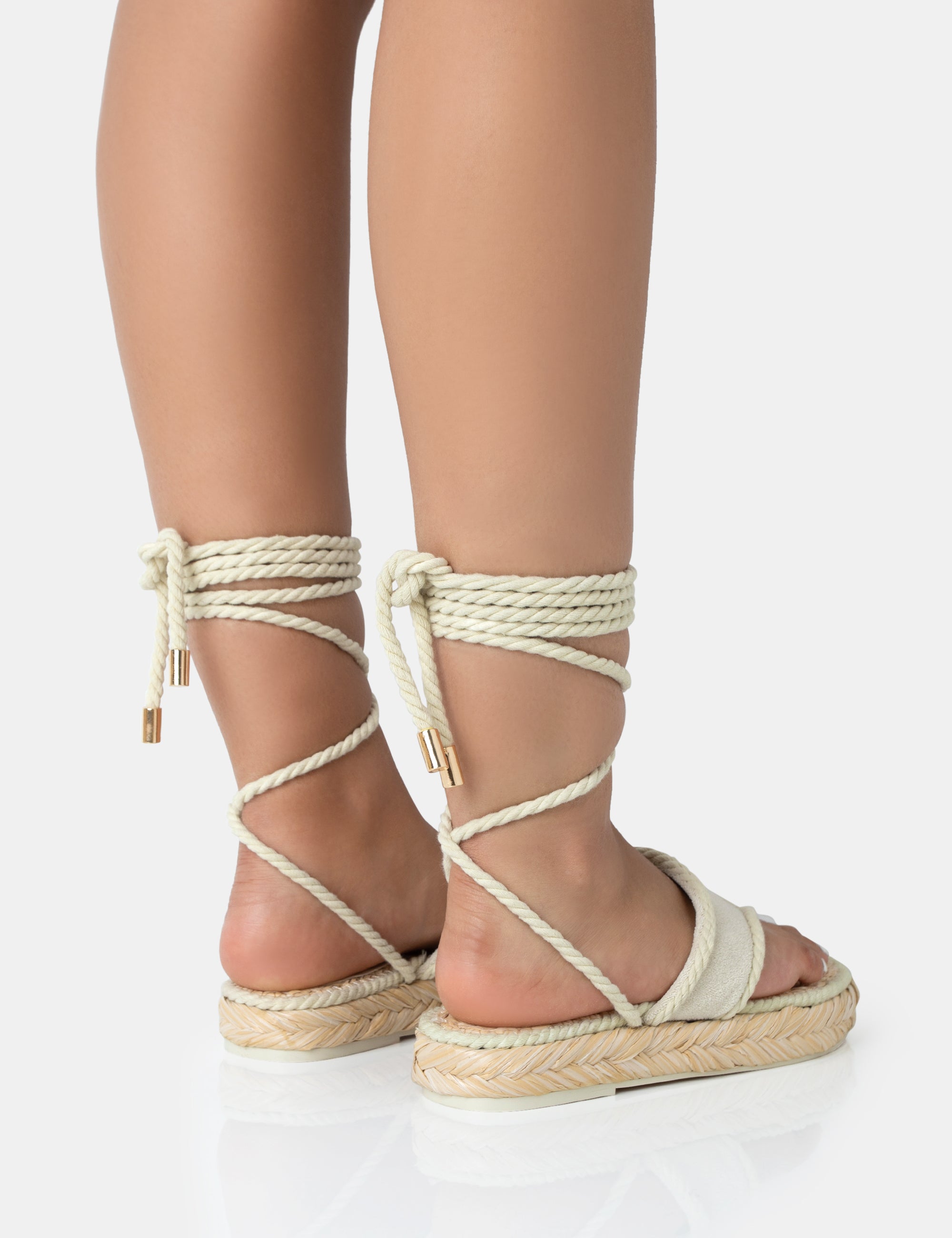 Laguna Beach Cream Towelling Flip Flop Raffia Sandals