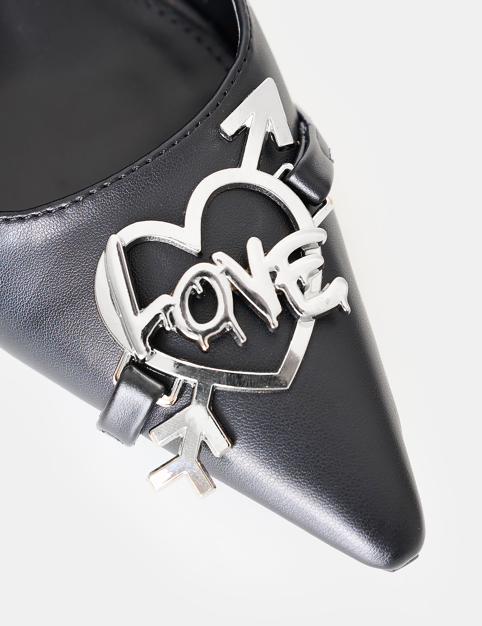 Luxe Black Love Hardware Lace Up Silver Stiletto Court Heel