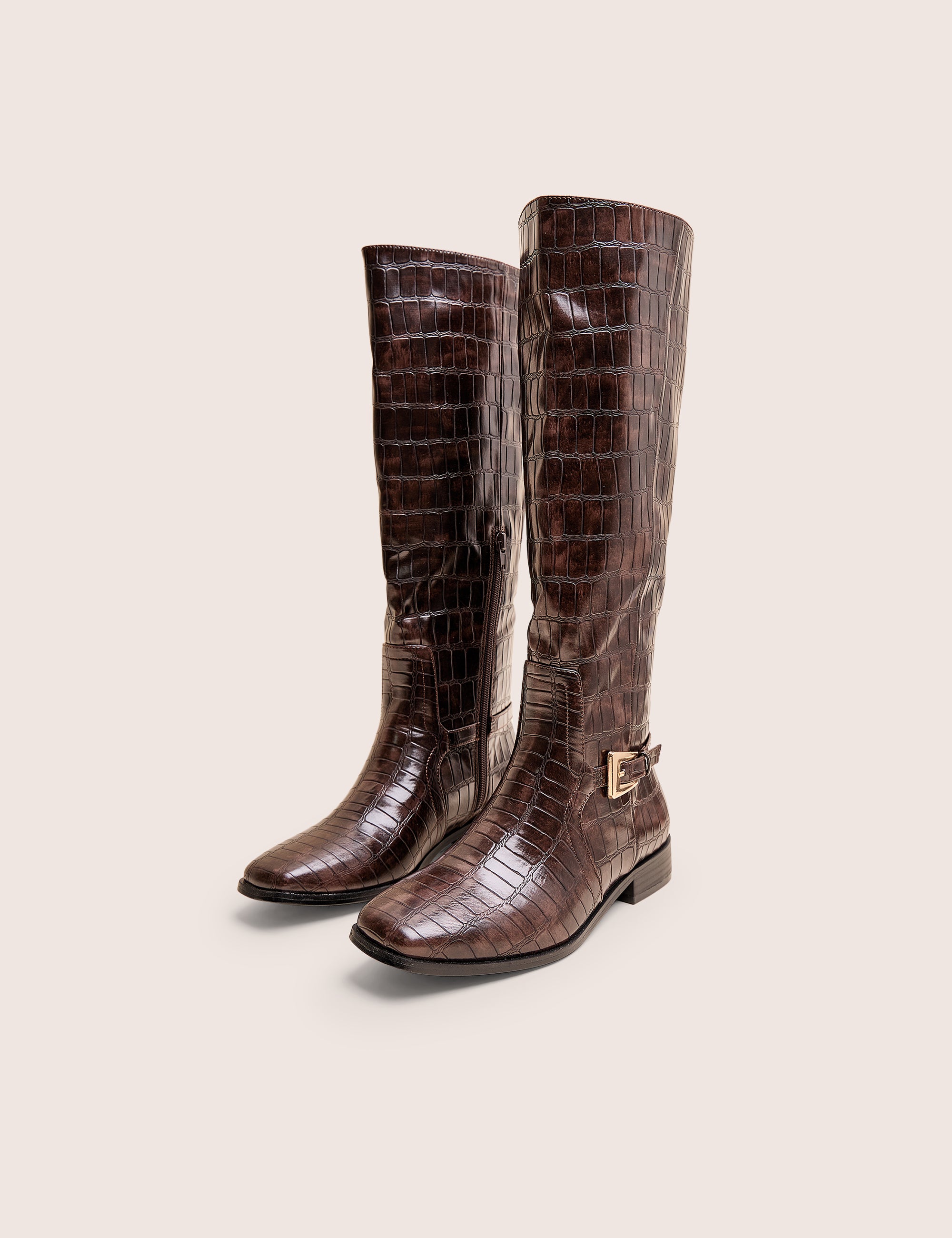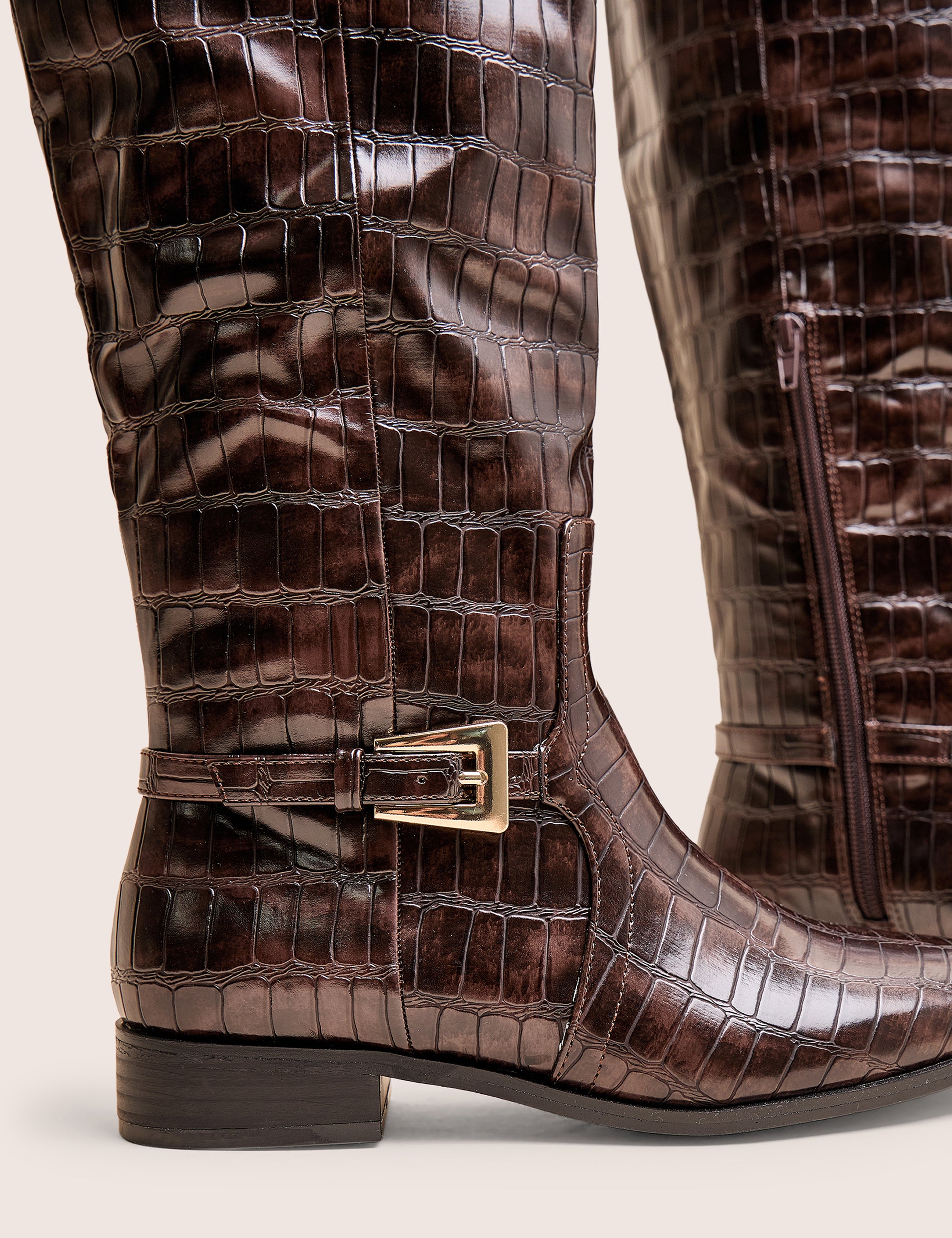 - Mackie Brown Croc Buckle Detail Knee High Riding Boot