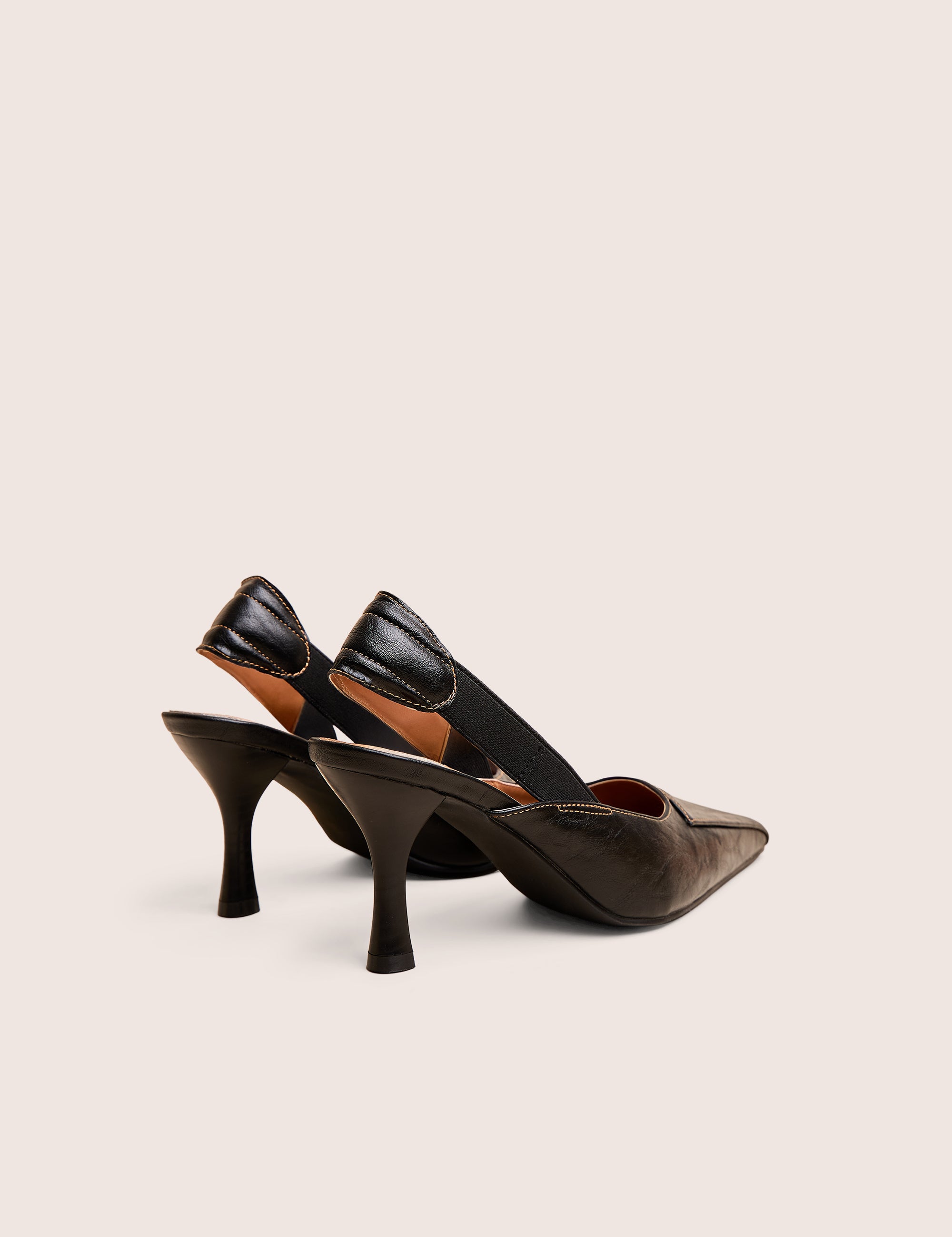 Malia Vintage Black Fold Over Detail Cushioned Slingback Court Heels