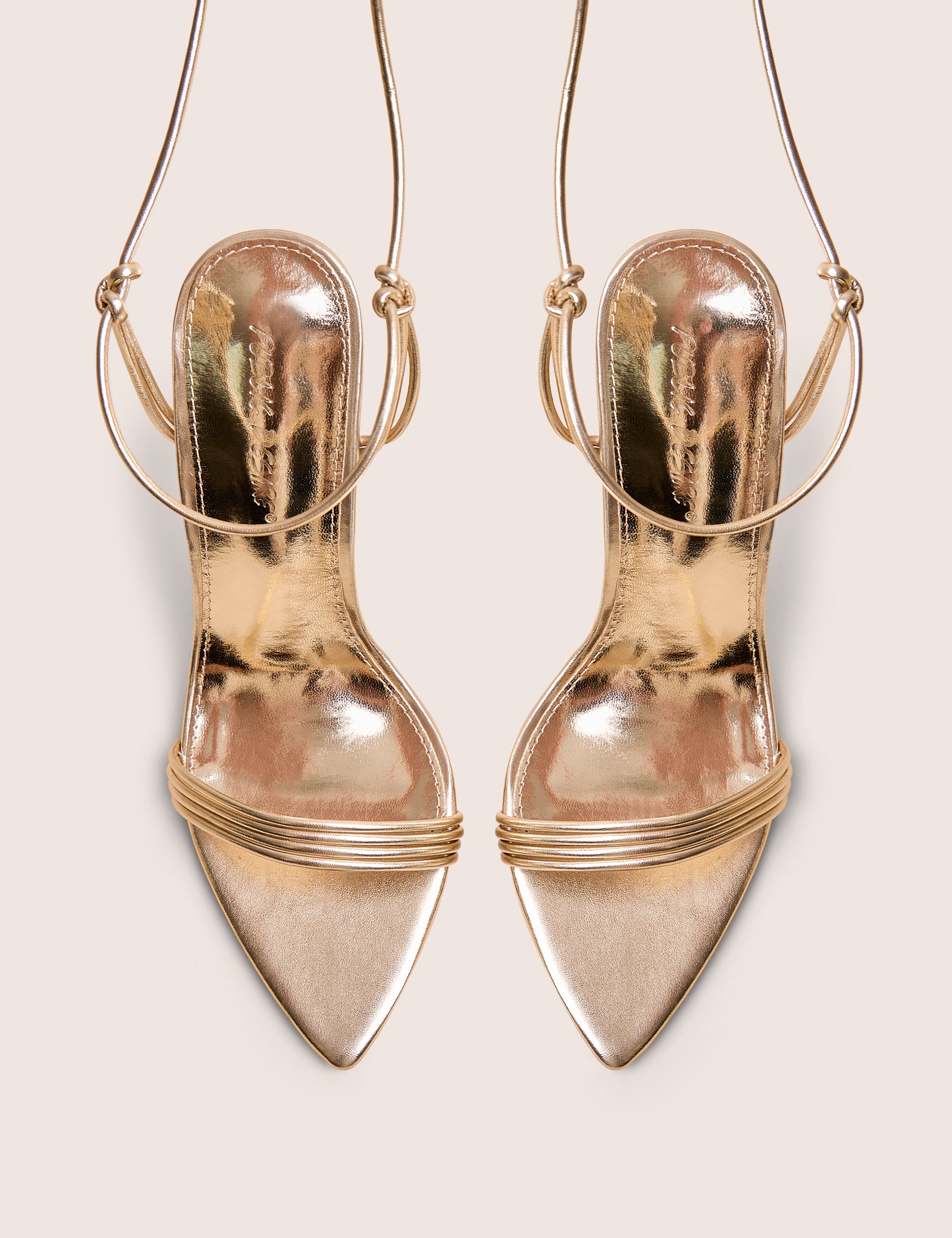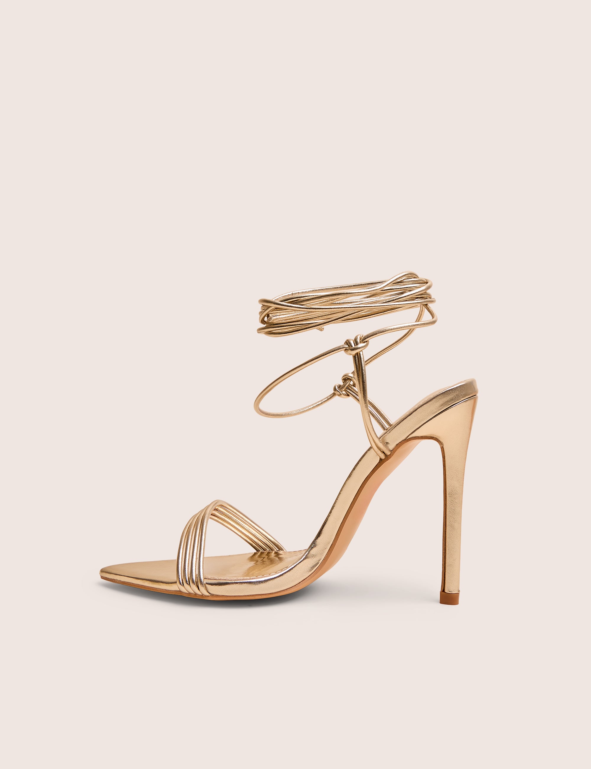 - Merlot Metallic Gold Lace Up Wrap Around Pointed Toe Stiletto Heels