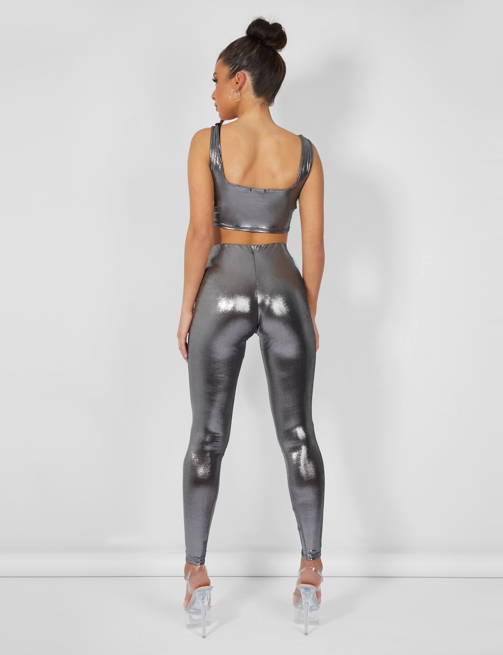 Introducing the new era of Public Desire! Step into our fantasy in bold metallics, sci fi sexy cut out pieces and vibrant prints. This metallic crop top in silver is a must have piece in your wardrobe. Featuring lightweight material and reflective material. The silver hue is sure to make a statement, the chrome finish captures all the rage that dominated the 2023 runaways. Here at PD HQ we want you to feel your best inside and out. Our clothing is here to take you there!
