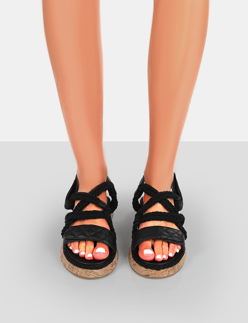 - Miami Wide Fit Black Rope Flatform Lace Up Sandals