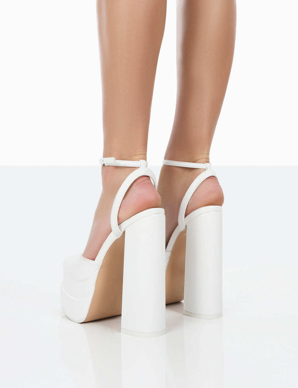 - Moonchild White Pu Closed Toe Statement Platform Block Heels
