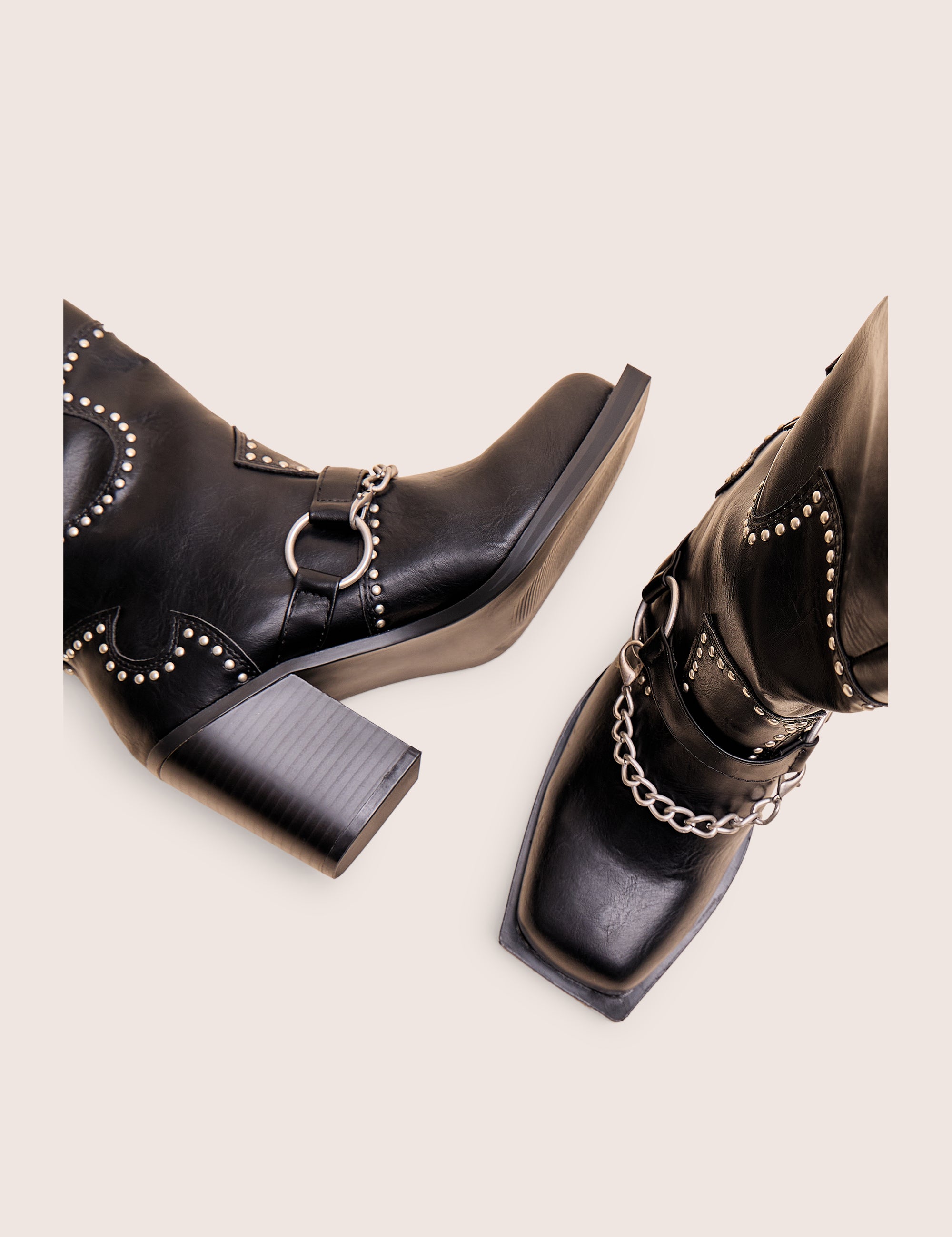 - Nashville Black Western Studded Block Heel Knee High Boot