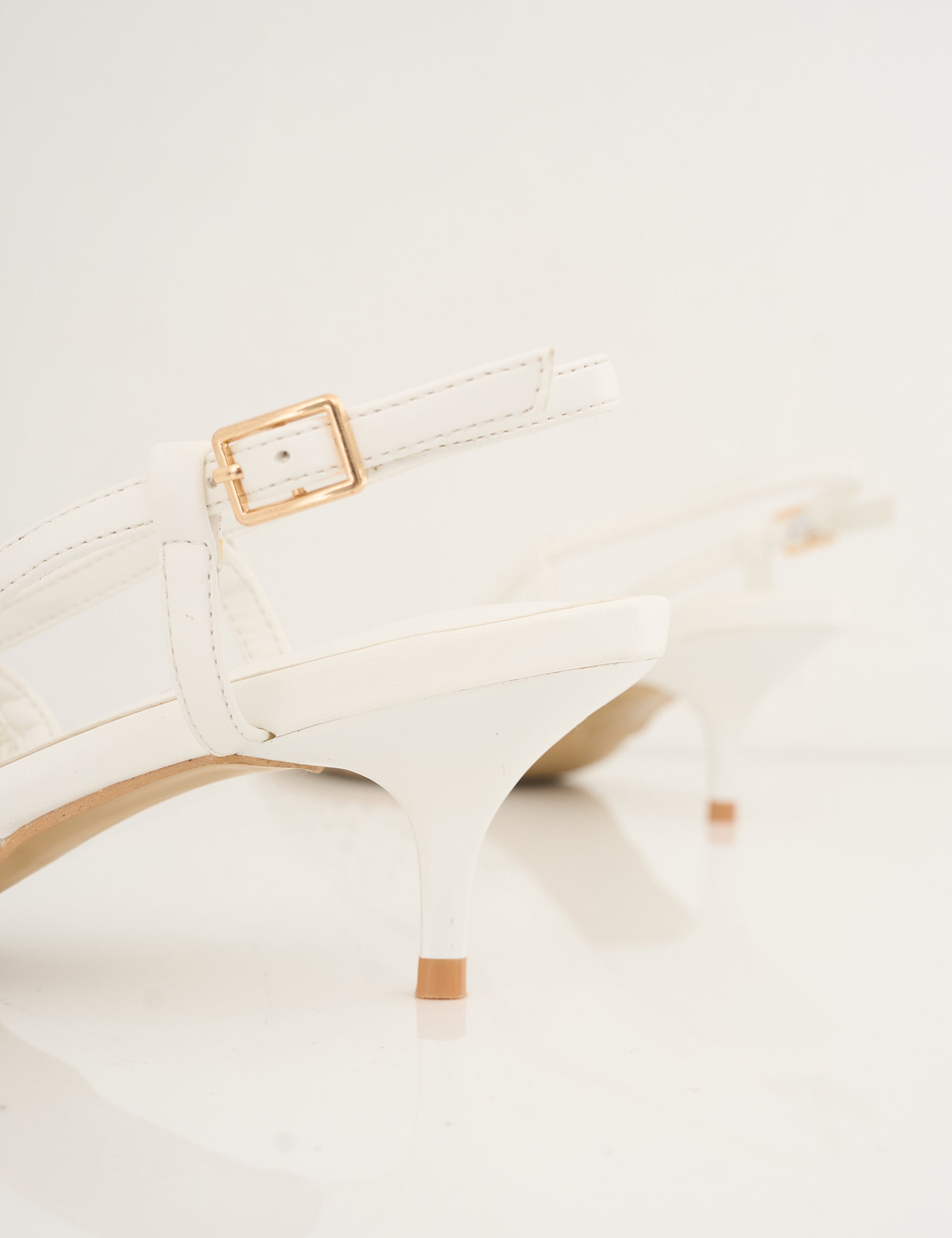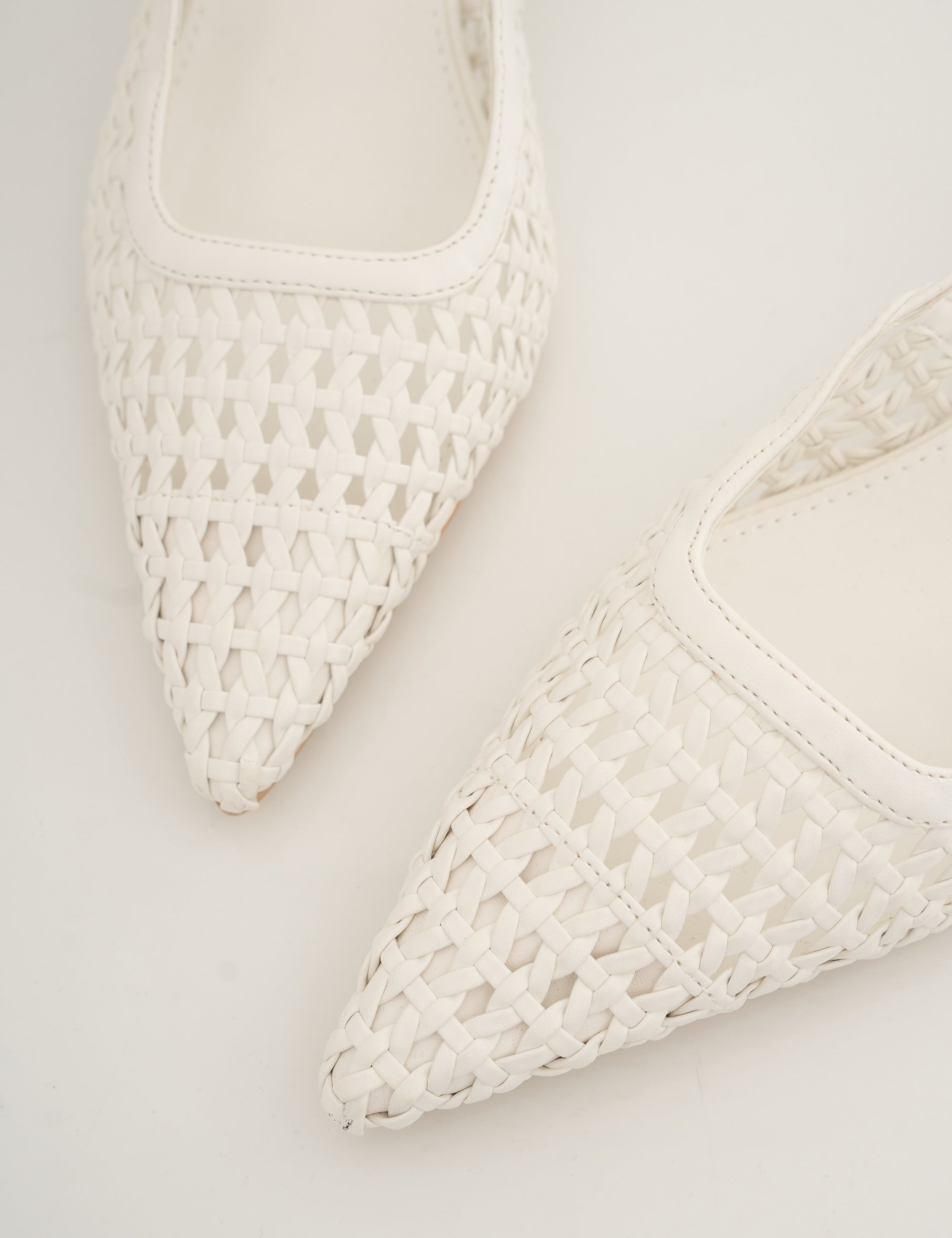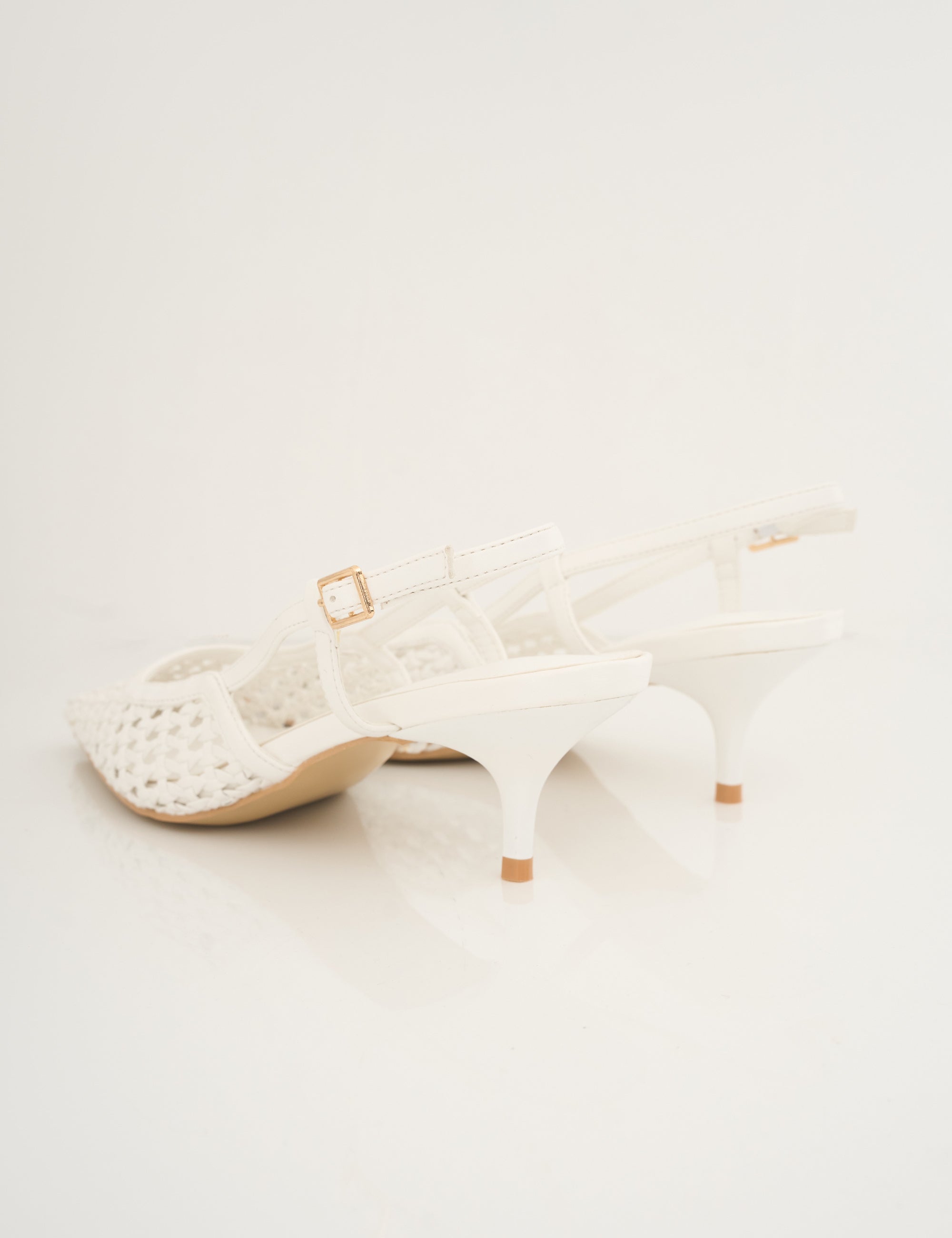 Elevate your style with Neita White Pu Woven Slingback Court Mid Heels. These luxurious heels feature a woven design and slingback silhouette for a chic and sophisticated look. The mid heel height provides comfortable support while adding a touch of elegance to any outfit. Step out in confidence and make a statement with Neita.