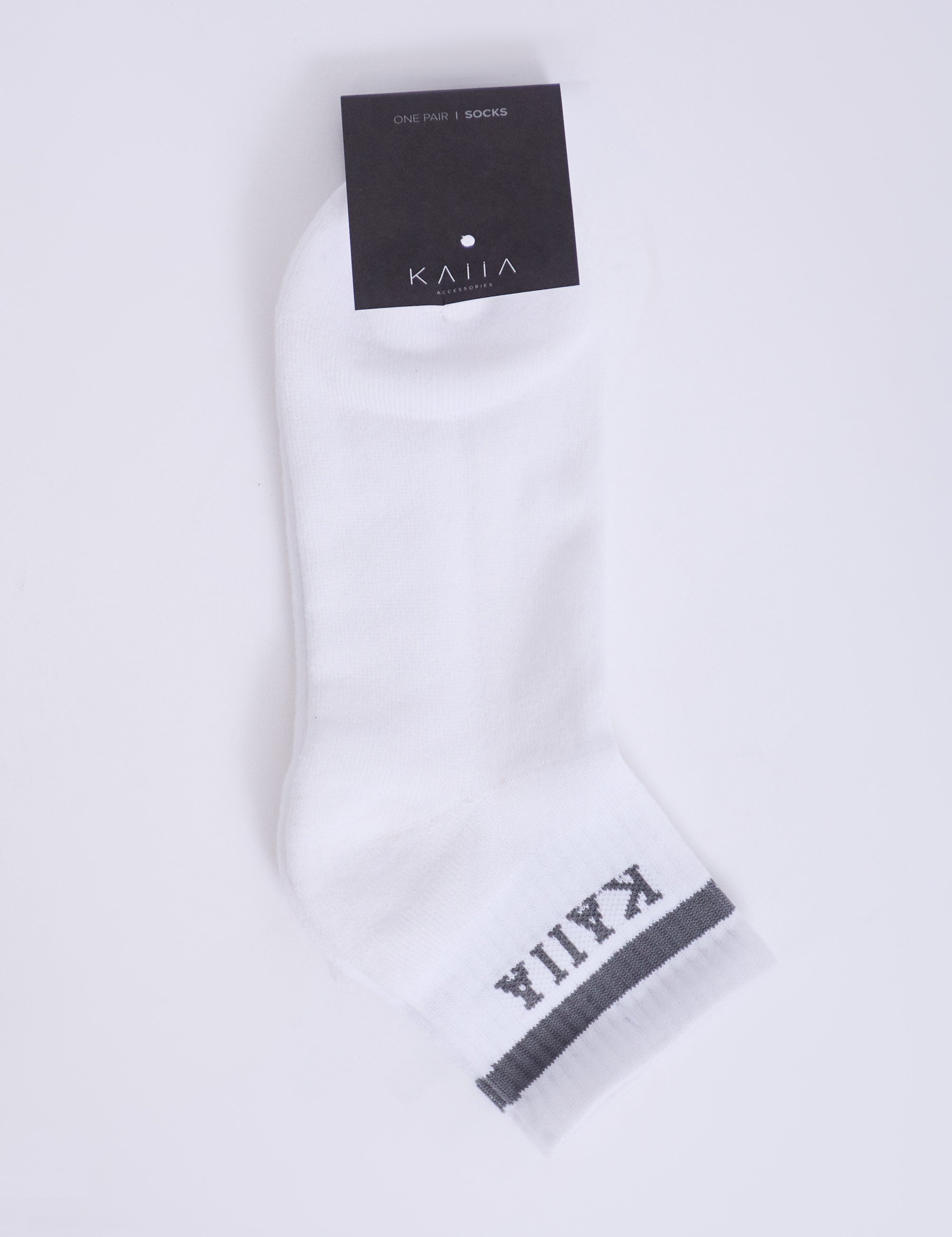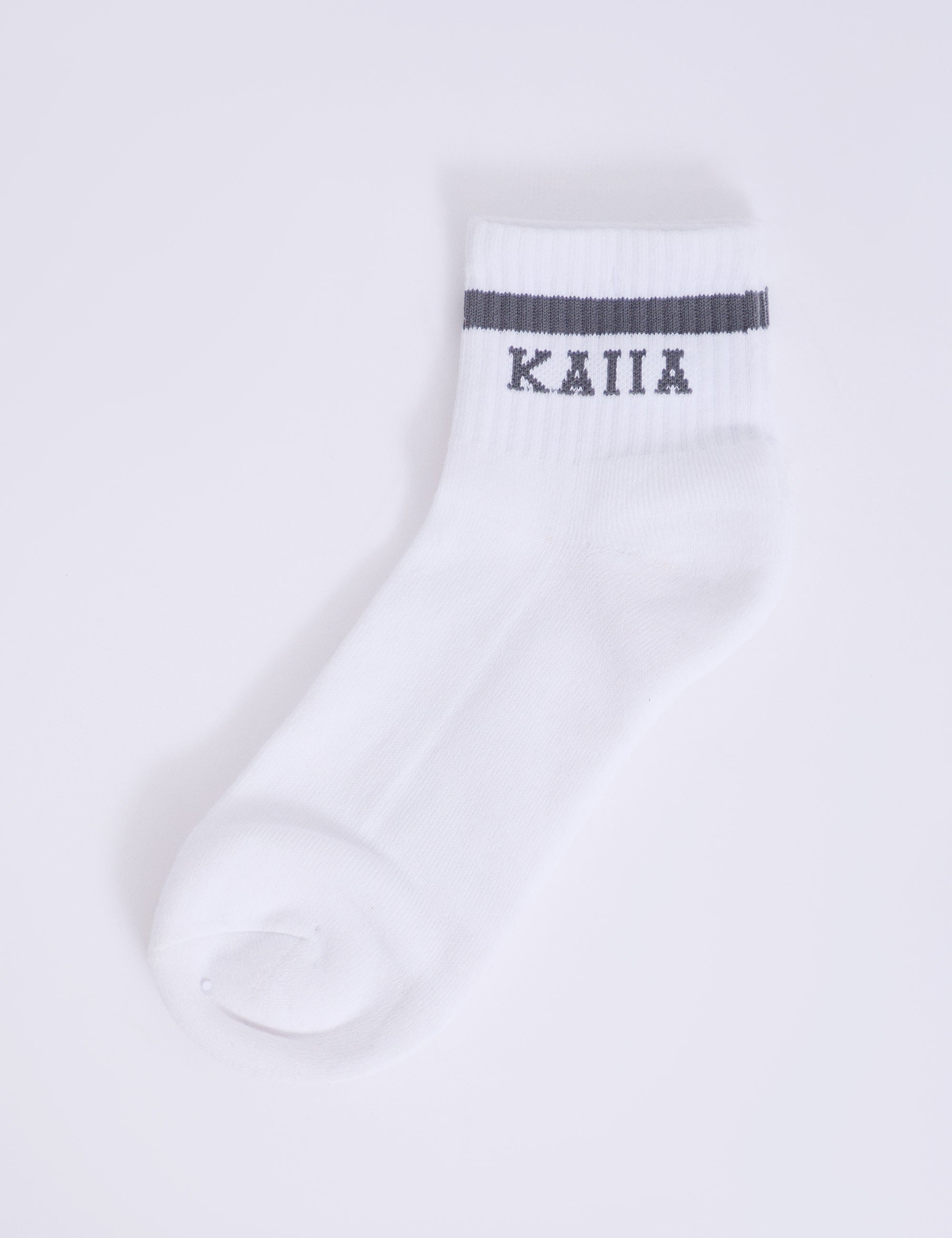 One Pair Kaiia Logo Sports Stripe Socks White & Grey