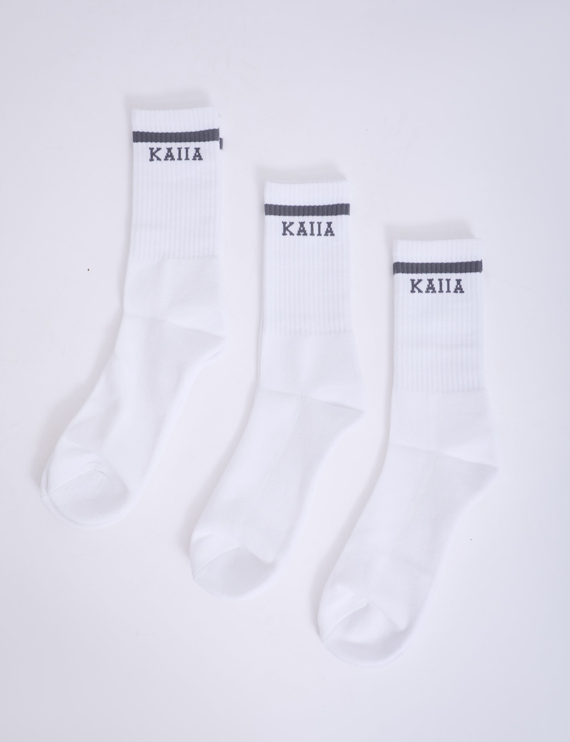 Pack of Three Kaiia Logo Sport Stripe Longline Socks White & Grey