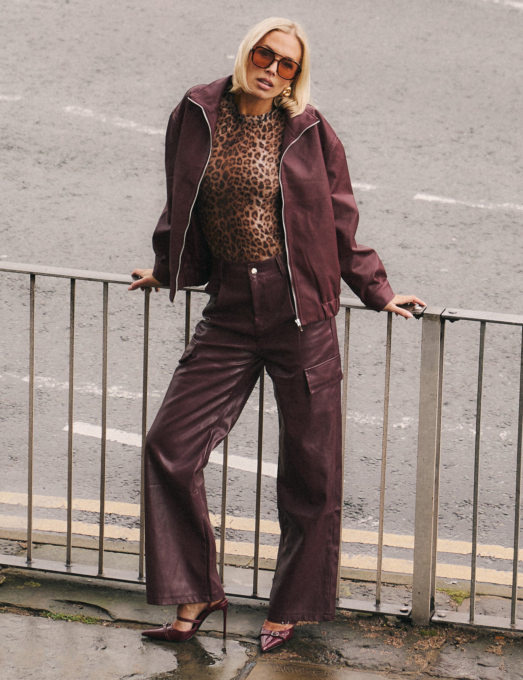 Step out in style with our Faux Leather Cargo Trousers in Burgundy! These trousers are designed with faux leather for a chic and edgy look. The cargo style adds a touch of utility and convenience. Elevate your wardrobe with these versatile and fashion-forward trousers.