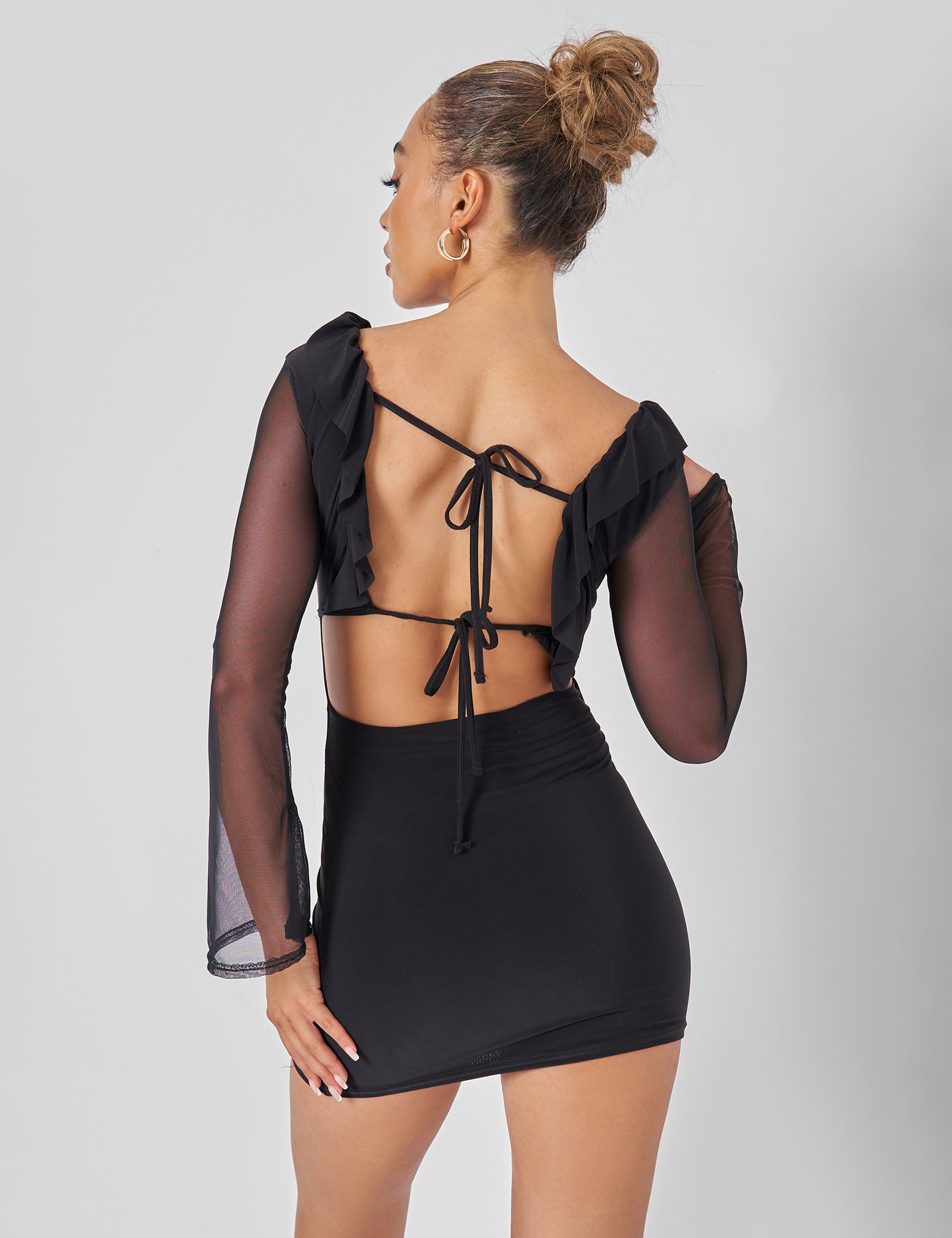 - Public Desire Mesh Tie Front Mini Dress in Black