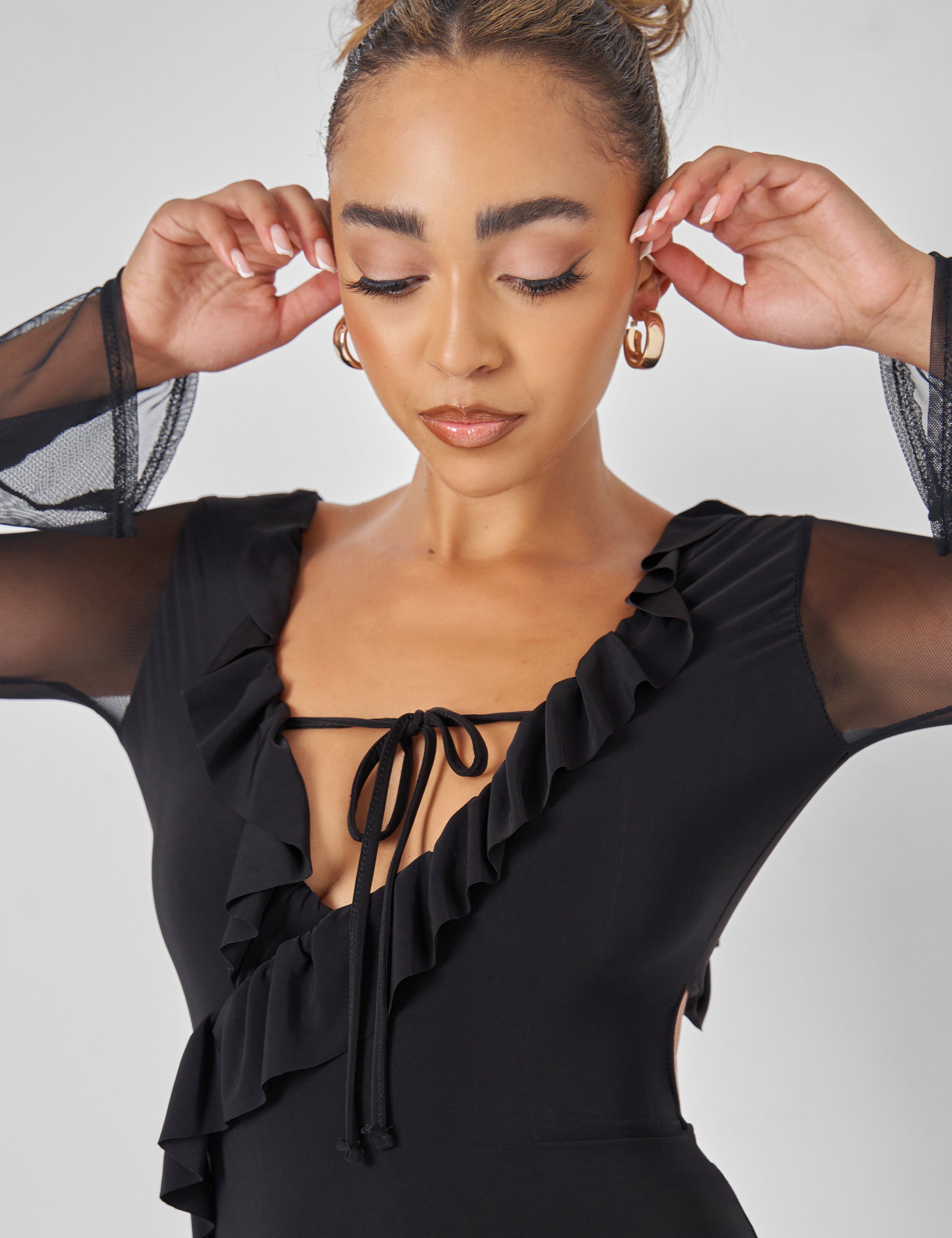 Don't let the party season sneak up on you! Get ready to slay with your new LBD from Public Desire: the Mesh Tie Front Mini Dress in Black. Perfectly combining fashion and comfort, this must-have dress is sure to turn heads! Be the talk of the town and make 'em stop and stare! (Just don't forget to accessorize!)