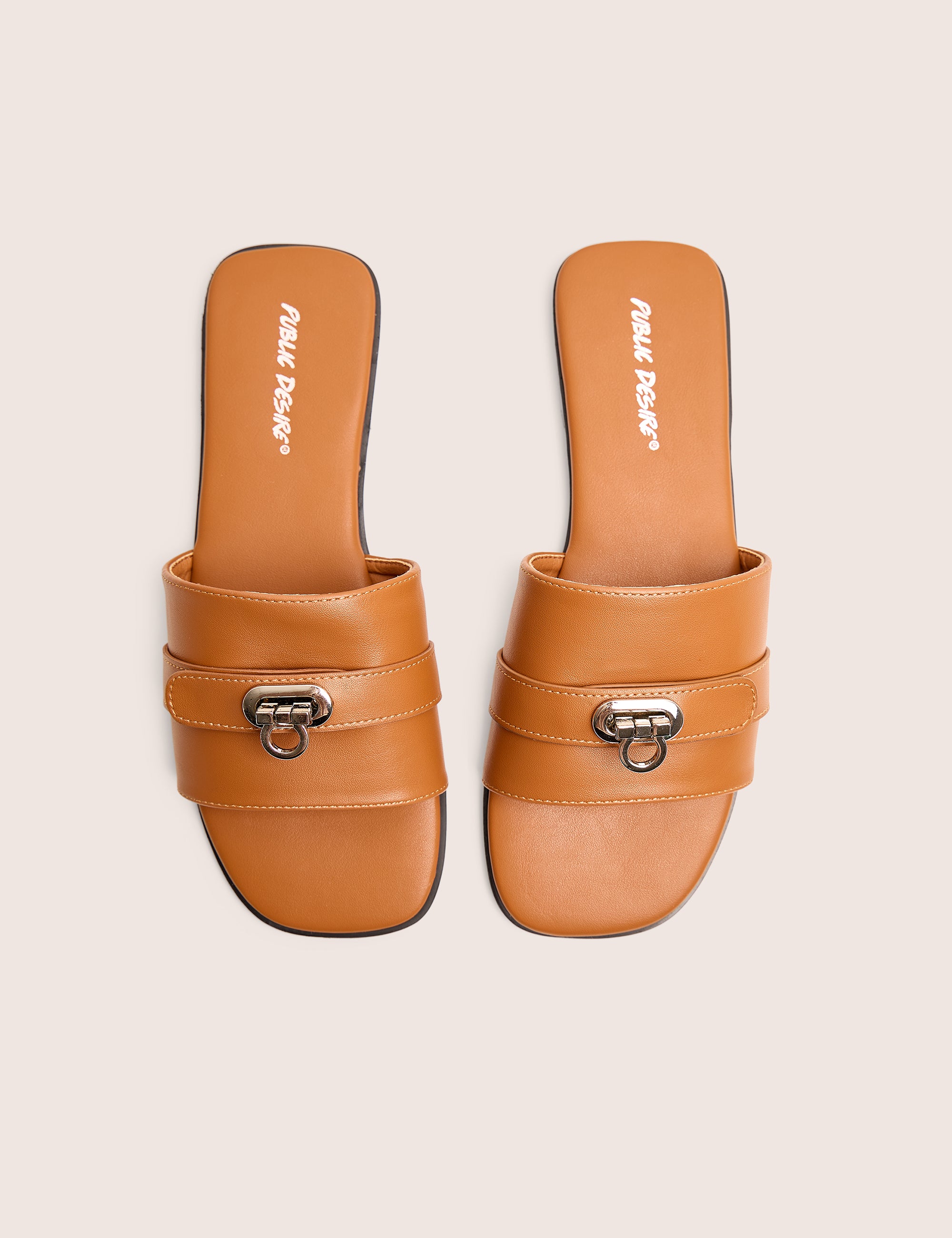 Radiance Wide Fit Brown Buckle Trim Flat Sandals