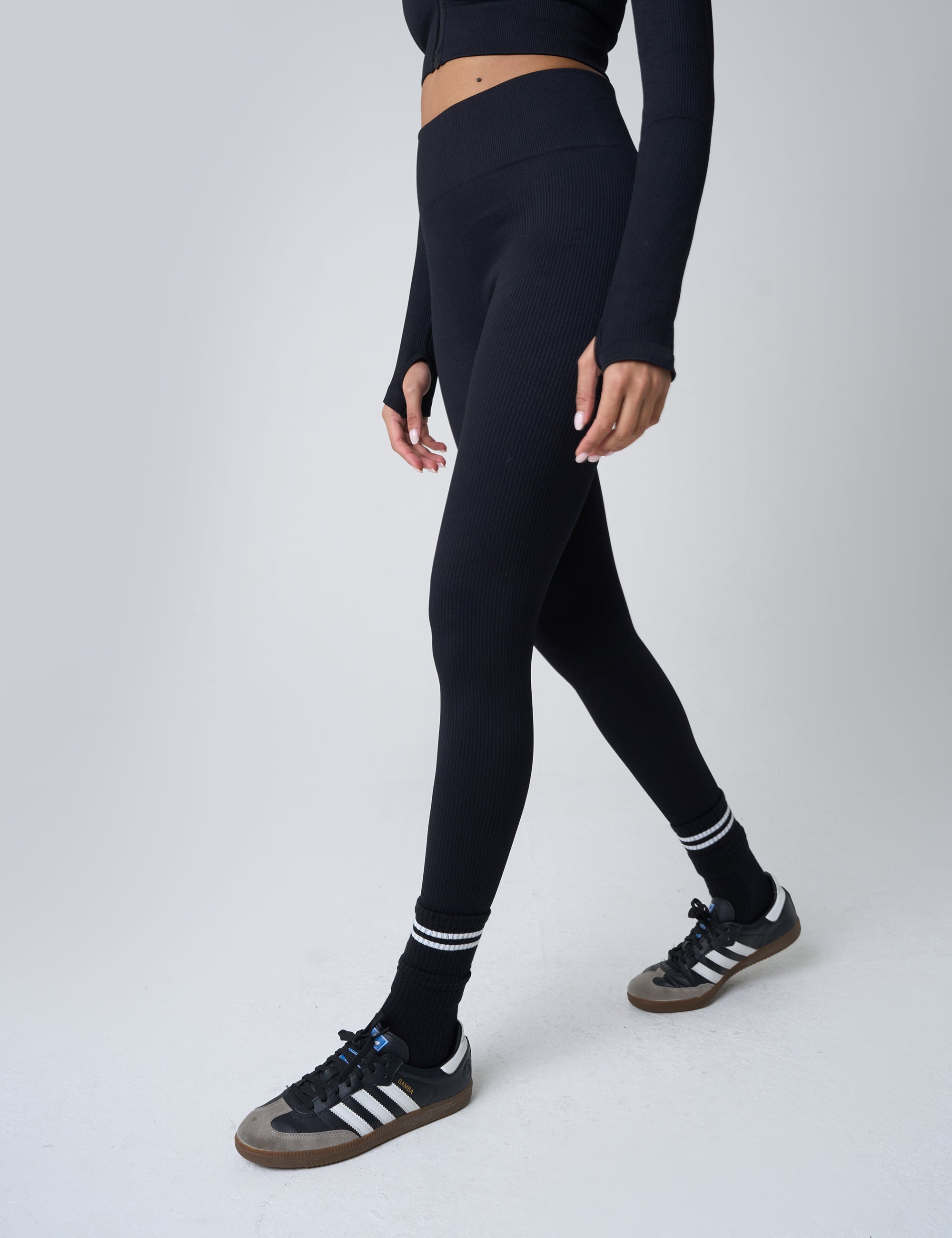 Achieve your dream silhouette with our Ribbed High Waisted Bum Lift Leggings in Black! The ribbed fabric and high waist design enhance your curves for a lifted look. Perfect for working out or dressing up, these leggings are a must-have for any wardrobe. Feel confident and comfortable all day long!
