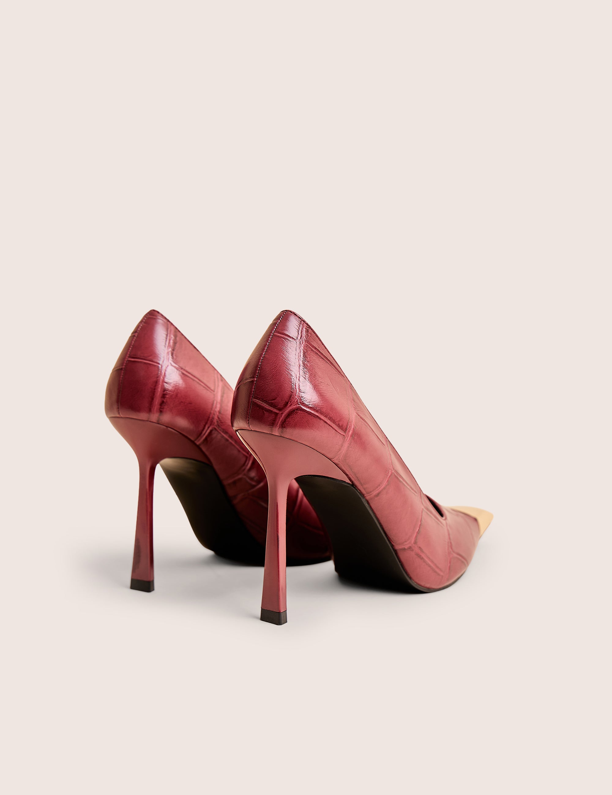 - Rotate Burgundy Croc Gold Toe Detail Court High Heels