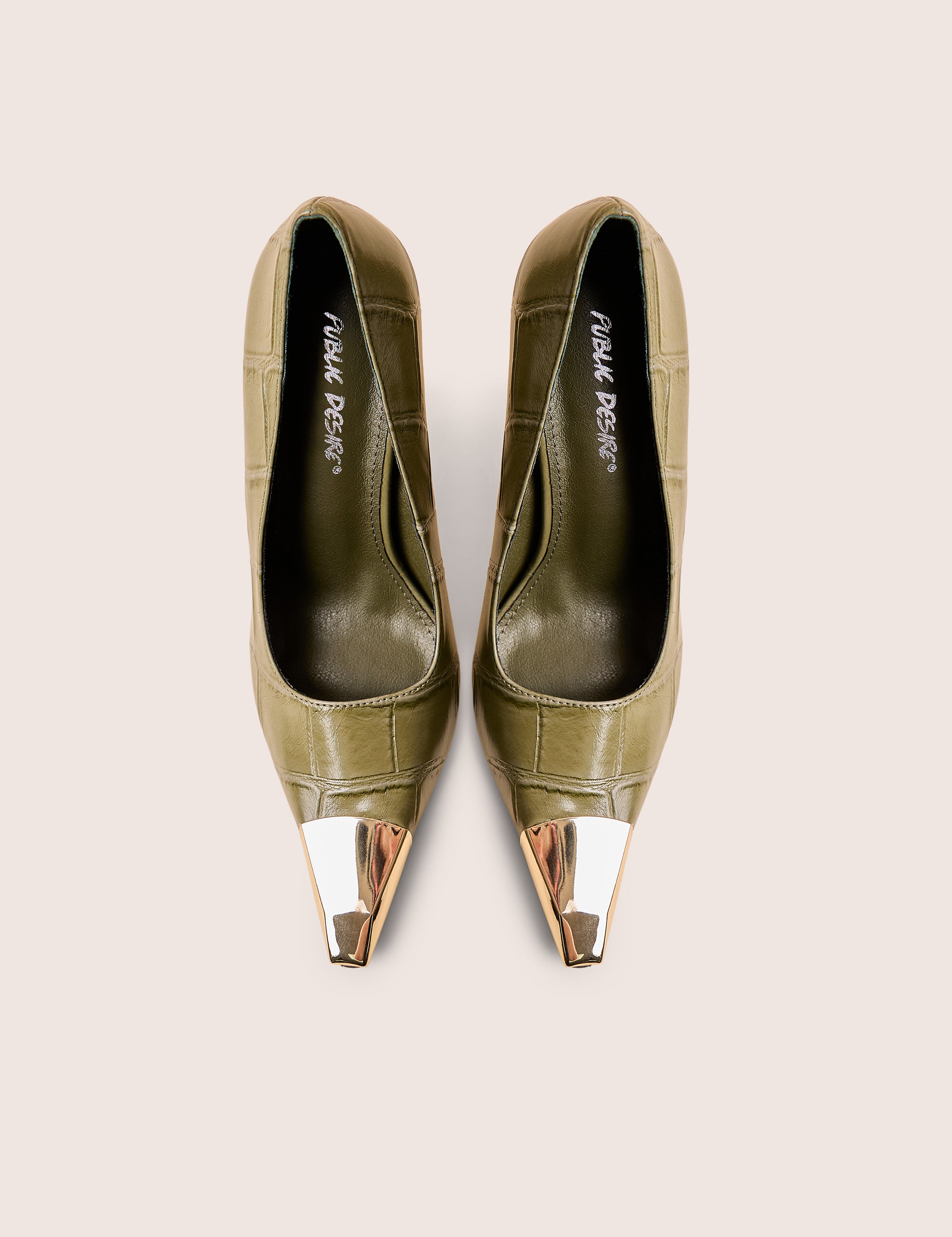 - Rotate Green Croc Gold Toe Detail Court High Heels