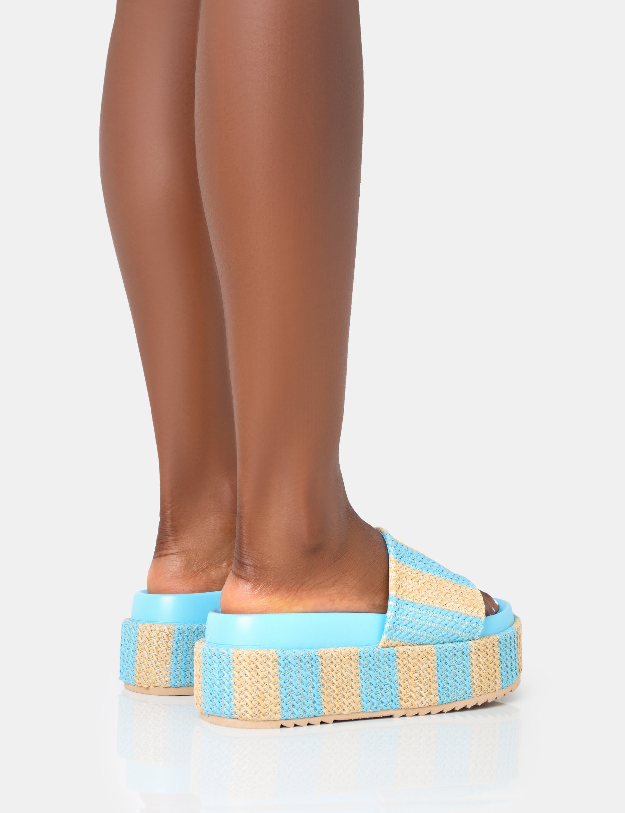 - Seashore Blue Stripe Raffia Slider Flatform Sandals