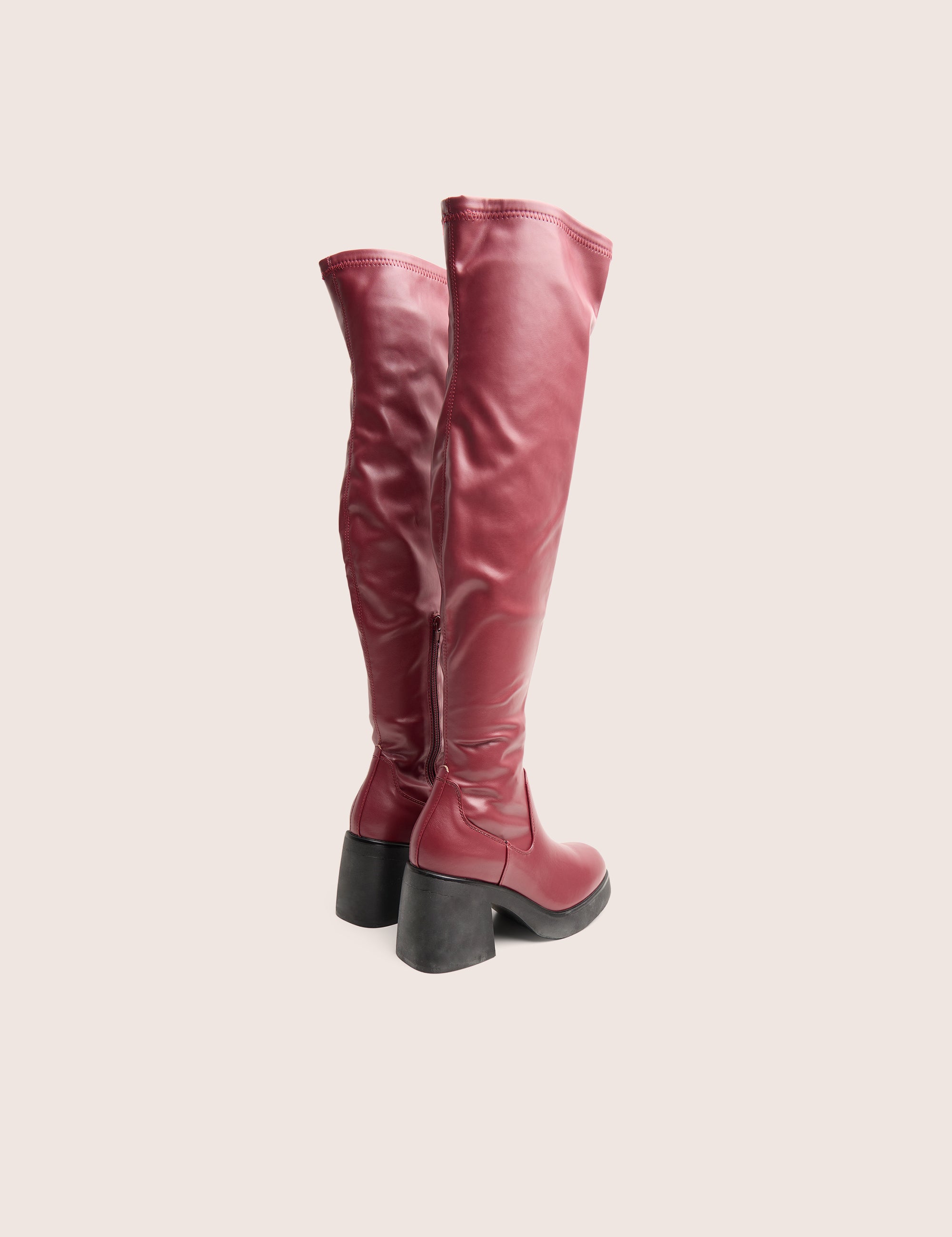 - Sensored Burgundy Chunky Sole Sock Over the Knee Boots