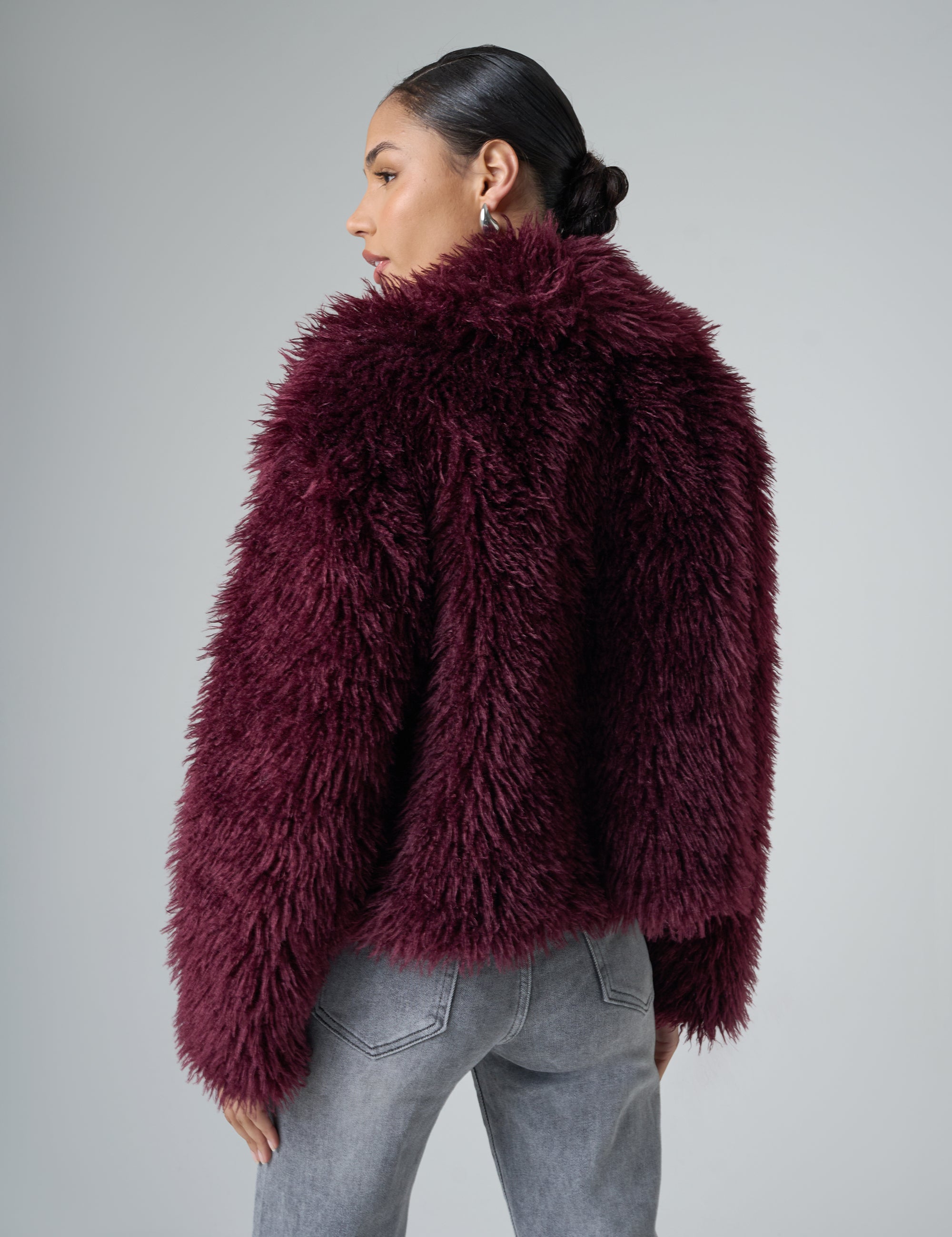 Wrap yourself in luxurious warmth and style with our Cropped Shaggy Fur Jacket Burgundy. The soft and shaggy fur is perfect for chilly days and adds a touch of glam to any outfit. Stay cozy and turn heads with this must-have statement piece!